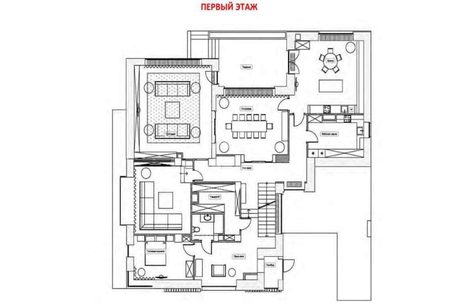 | Этажи/уровни: | 1 этаж: холл с тамбуром, большая гардеробная, кухнястоловая, столовый зал, гостиная, кинотеатр/кальянная, спальня, гостевой с/у, доп. кухня, терраса. - 2 этаж: два мастер блока с большими собственными санузлами и гардеробными, кабинет. - 3 этаж (мансарда): игровая зона/спортивный зал. - Цоколь: зона SPA с хамамом, хозяйственный блок с постирочной, тех. помещения, бойлерная, с/у, техническая помывочная. - Блок для персонала с отдельным входом: студия с кухней-столовой и спальной зонами, с/у. - Подземный паркинг на 4 машиноместа. - Отдельный собственный пункт охраны |