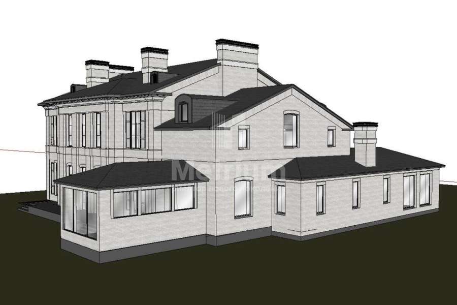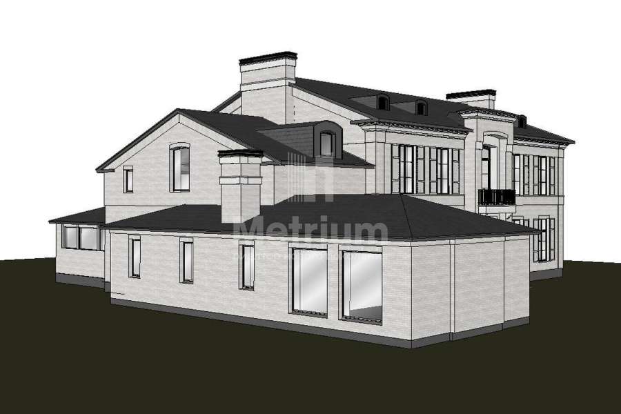 | Этажи/уровни: | 1-й этаж: холл, гардеробная, гостиная, столовая, кухня, гостевой с/у, кабинет, с/у, спортзал, сауна с с/у, веранда, рабочая кухня, 2 кладовые, постирочная, с/у, бойлерная, гараж на 2 м/м. 2-й этаж: холл, мастер-спальня с ванной комнатой и гардеробной, спальня с ванной комнатой и кабинетом, спальня с ванной комнатой и гардеробной. Комната для персонала с с/у и мини-кухней. Мансарда: свободная планировка. |