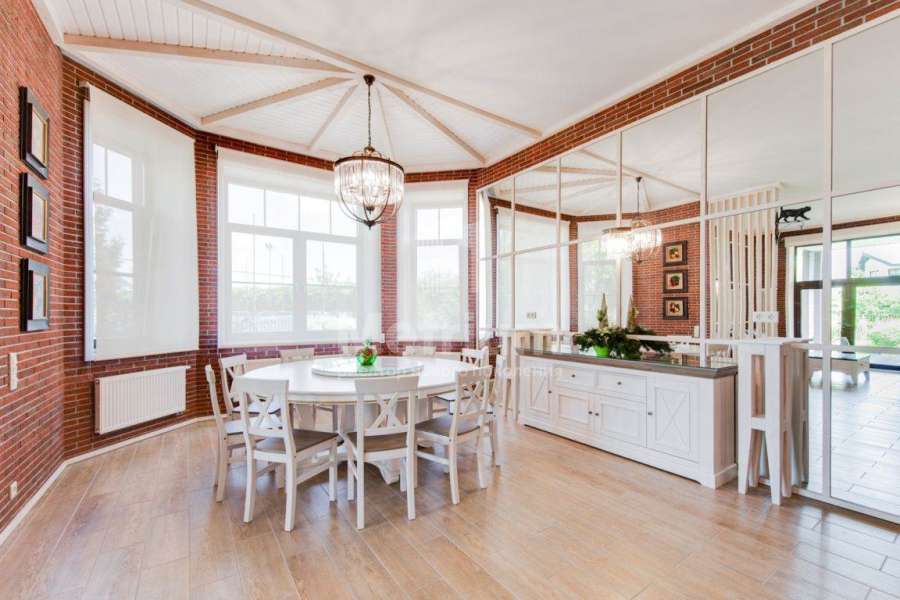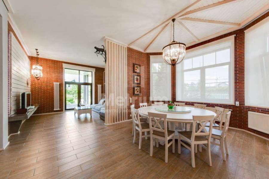 | Этажи/уровни: | 1 этаж: холл, кухня, гостиная-столовая, детская спальня, с/у, постирочная, бильярдная, сауна, котельная, зона отдыха с кухней выход на просторную террасу, с/у, душевые, навес на 2 м/м; 2 этаж: библиотека, спальня, с/у, большая спальня, кабинет с печью, спальня с большим с/у. |