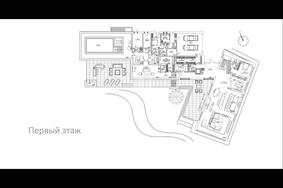 Одна из особенностей виллы- зона отдыха, состоящая из окружающих террас — 249 м² и участка 63 сотки! Также для удобства предусмотрен гараж на 2 автомобиля и блок для персонала, расположенные на 1 этаже.