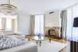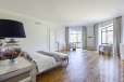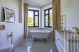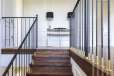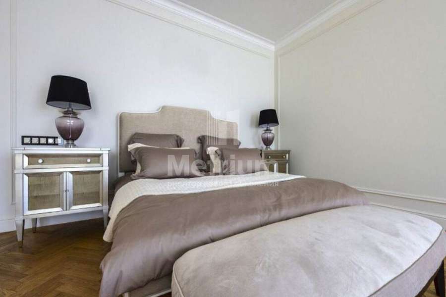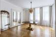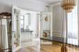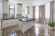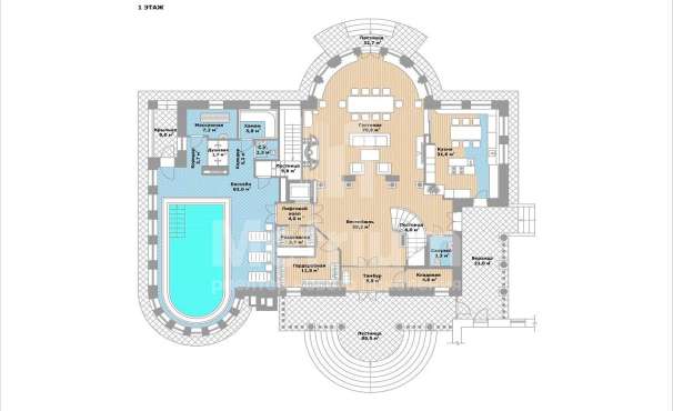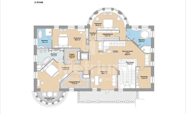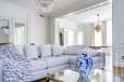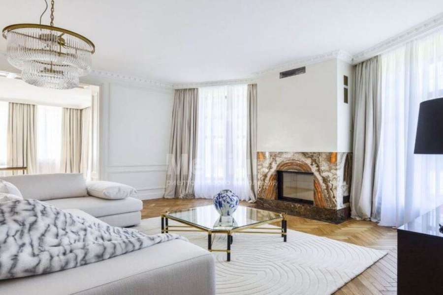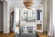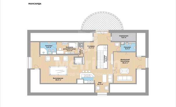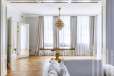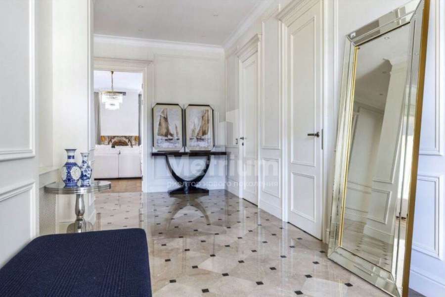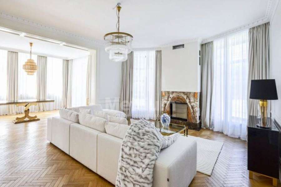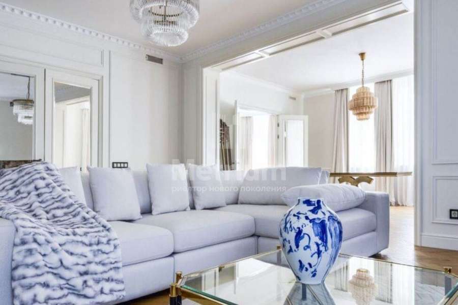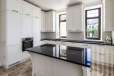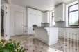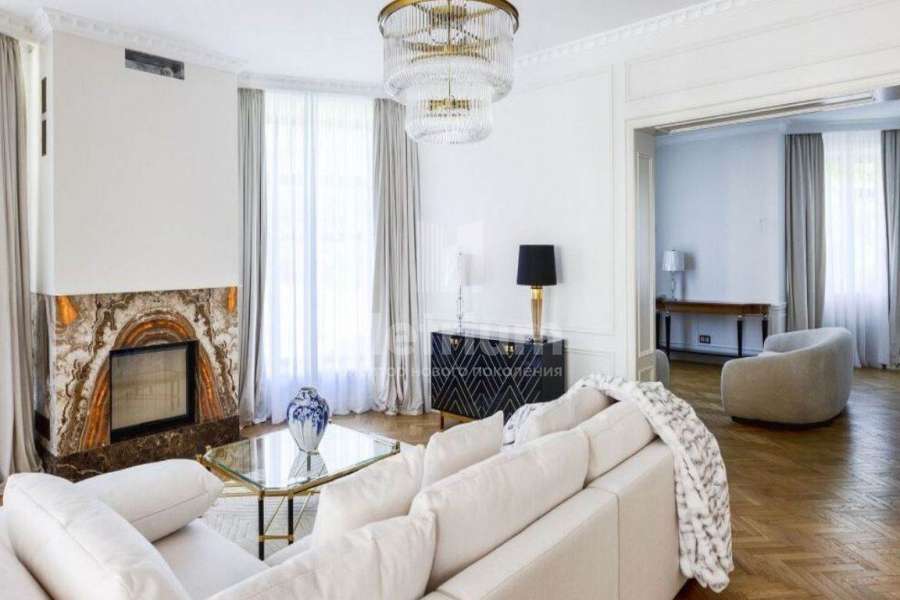Дом находится в коттеджном посёлке Гринфилд в Истринском районе в 29 километрах км от МКАД по скоростному Новорижскому шоссе. Классический молочный оттенок стен и идеальный паркет плавно перетекают из комнаты в комнату, создавая ощущение единства и широкий простор для фантазии. Тёплую атмосферу дополняют деревянная лестница, оконные рамы, золотистая фурнитура и плитка песочных тонов.