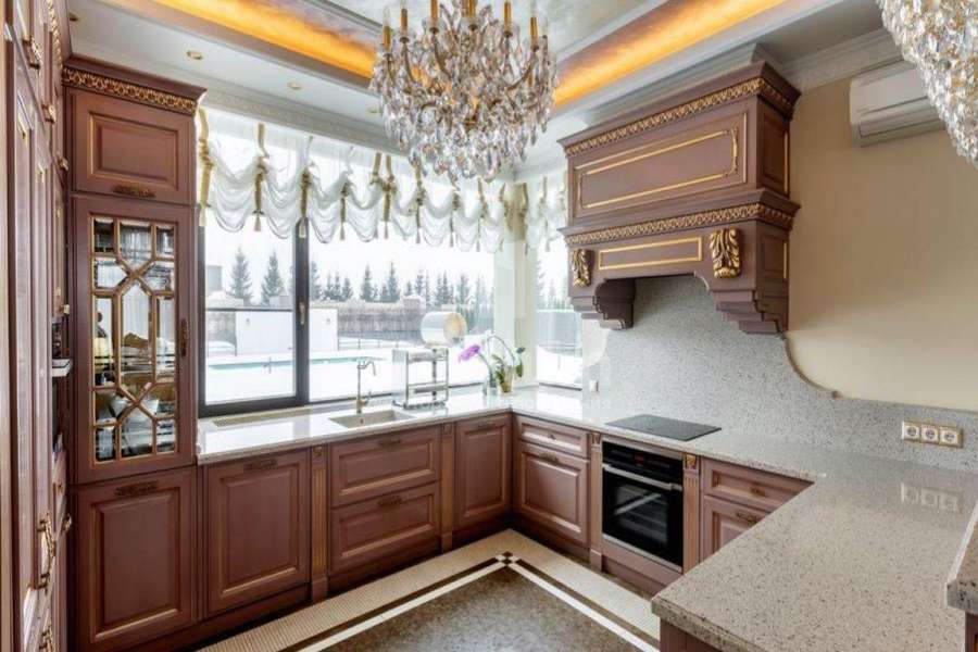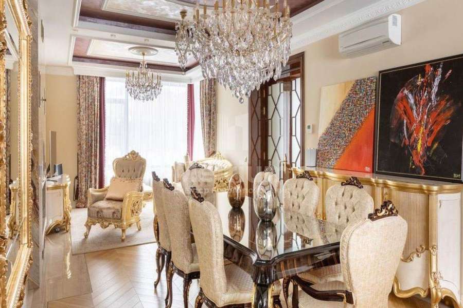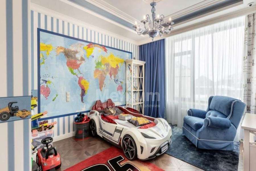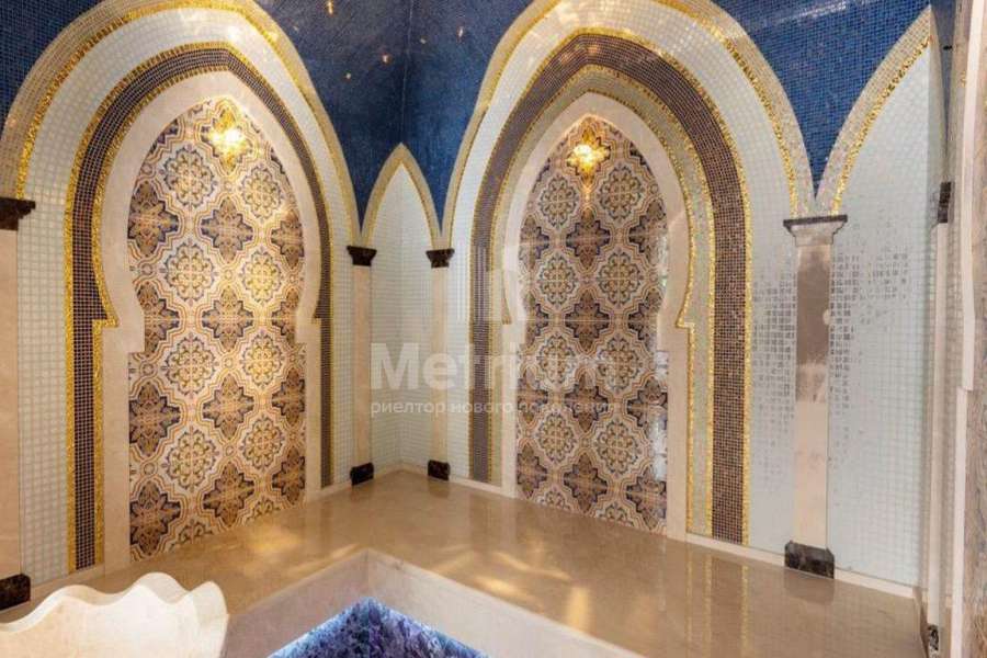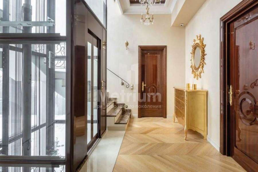 Зеленая территория с ландшафтом, на участке: основной дом, летний дом, бассейн, дом для персонала, гараж на 2 авто. На территории: основной дом (3 уровня) с отдельным блоком для персонала и охраны, летний домик для барбекю с мангалом и террасой для отдыха, футбольное поле. Отделка de-luxe в стиле современной неоклассики с элементами эклектики, полностью меблирован, бесшумный лифт.