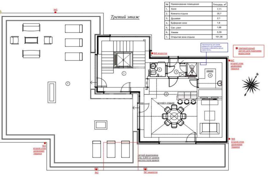| Этажи/уровни: | -1 этаж: холл с большой гардеробной, с/у, кухня-столовая, гостиная с камином, гостиная кинотеатр, терраса. -2 этаж: четыре мастер-спальни с с/у и гардеробными. -3 этаж: хамам, комната отдыха с панорамным остеклением, просторная терраса 161 кв.м |