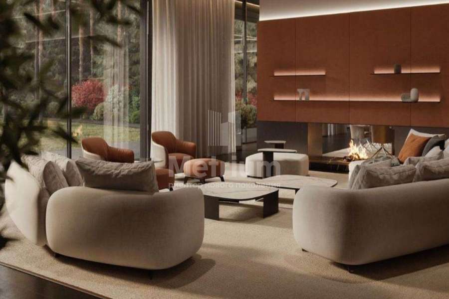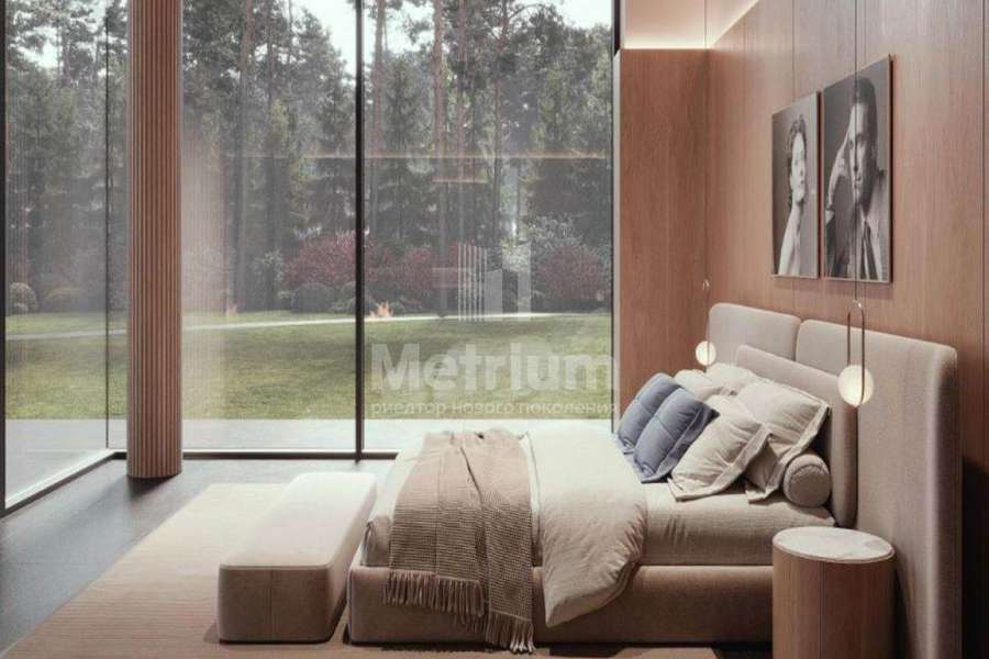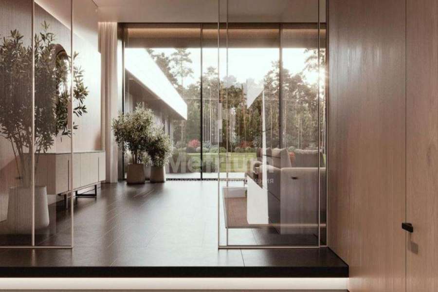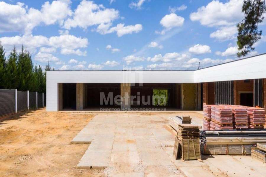 Одноэтажный дом из белого камня с панорамным остеклением. В проекте дома учтены подходы ведической архитектуры: посадка здания на местности, с учетом расположения сторон света - размещение окон и входной двери, для сохранения естественного освещения внутреннего пространства, согласно движению солнца, зонирование и совмещение жилых и нежилых помещений под одной крышей, просторные внутренние помещения дарят комфорт и расширяют потенциал для реализации самых смелых идей. Благодаря качественному остеклению, панорамным окнам, без переплета и оптических линз, природа воспринимается единым целым с внутренним пространством дома. Дом полностью построен в 2022 году. На середину лета 2023 года дом прошел проверку, отстоялся, получено заключение качества строительства. Завершена кровля, смонтирована канализационно-насосная станция хозяйственно бытовой и ливневой канализации (КНС). В дом заведено центральное водоснабжение, магистральный газ, выделенная электрическая мощность 100 кВт. Ведутся работы по остеклению, утеплению и облицовке фасада.