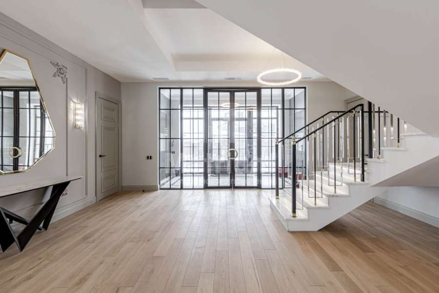 | Этажи/уровни: | 1 этаж: холл, прихожая, кухня, столовая, гостиный зал с камином, кабинет, с/у, постирочная, гараж на 2 м/м, котельная, 2-х комнатная квартира персонала с отдельным входом; 2 этаж: холл, спальня с гардеробной и с/у, 2 детские с одним с/у, хозяйская спальня с с/у и гардеробной. |