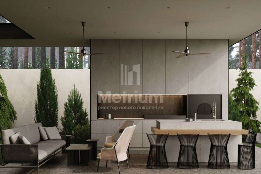 Дом расположился на участке 30 сот., имеет 5 спален, 7 санузлов, парадную и техническую кухню, оборудованную техникой Gaggenau. Патио, где расположена зона барбекю (с дровяной печью, зоной мангала и казана) и отдыха, интегрировано в общую архитектуру и имеет прямой выход из гостиной, спа-зона с керамической печью в парной и низкотемпературной купелью, уличным бассейном с подогревом для всесезонного использования и выходом на террасу. Технические помещения и вход для персонала отделены от зон общего пользования.