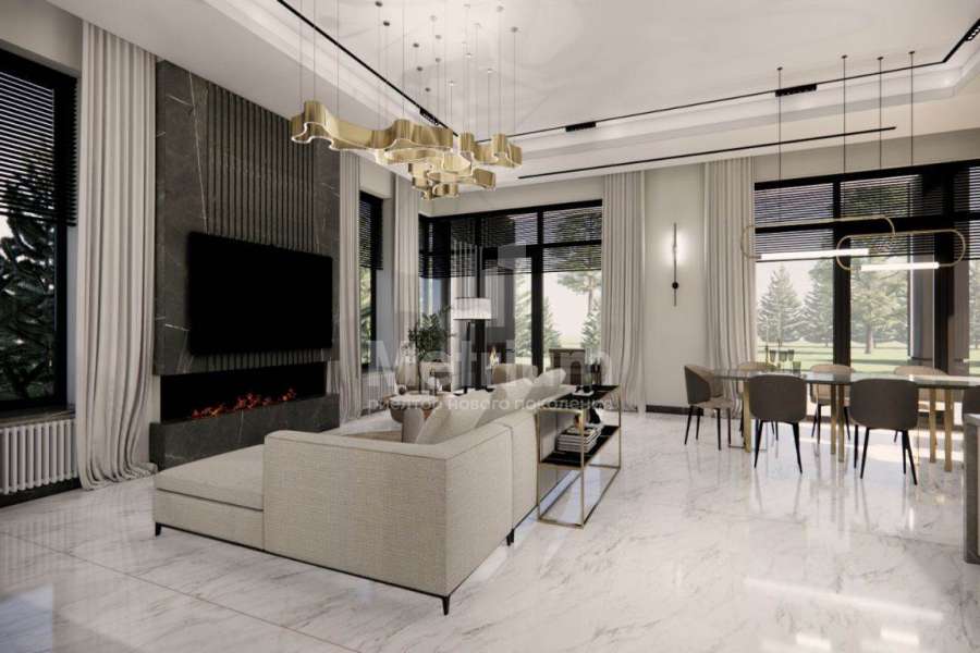Дом в коттеджном поселке «Agalarov Estate» (Агаларов Эстейт). Расположен на 20 км Новорижского шоссе. Гольф-поле на 18 лунок, гольф-клуб с рестораном, хьюмидорными, Академию гольфа Troon Golf, Beach Club с бассейном, рестораном и причалом для лодок на тихом электрическом ходу, крытый спортивный комплекс; три теннисных корта, поле для мини-футбола, боулинг, хамам, spa отель для гостей, 3 ресторана, бич-бар, барбекю-бар, снэк-бар, зону развлечений для детей и подростков, вертолетную площадку.
