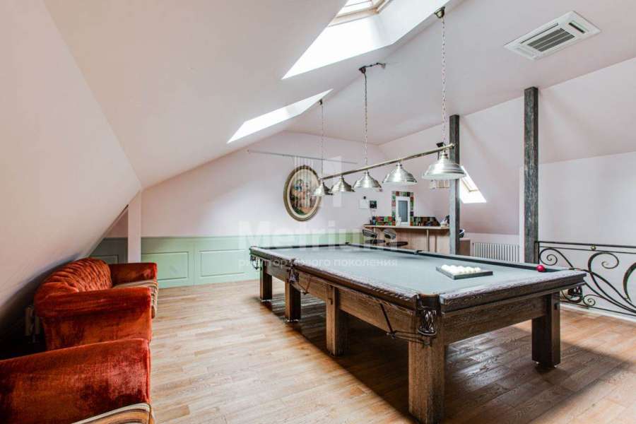 | Этажи/уровни: | Цоколь: котельная, постирочная, кладовая; Пeрвый этаж: холл, гардеробная, гостевой санузел, кухня-столовая-гостиная с выходом на террасу, спальня с ванной комнатой, СПА (сауна, душевая, комната отдыха/тренажерный зал), библиотека; Второй этаж: спальня с ванной комнатой и гардеробной, кладовая, детский блок (спальня, ванная комната, гардеробная, комната для занятий); Мансарда: бильярдная, санузел, барная стойка (мини-кухня), кабинет, спальня, ванная комната. |