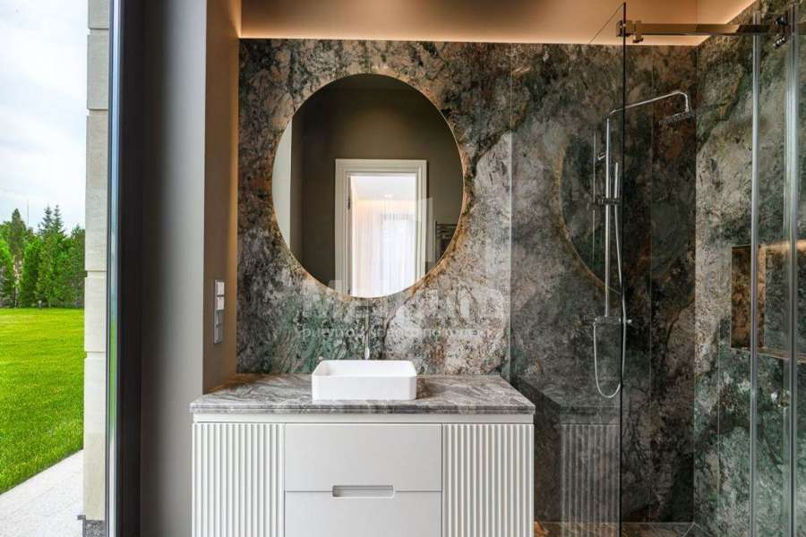 | Этажи/уровни: | 1 этаж: холл со вторым светом, гостевая гардеробная, гостевой санузел, гостевая спальня с санузлом и гардеробной, кухня-столовая, гостиная с двухсторонним камином, кухня для приготовления, СПА зона с бассейном, сауной и хаммамом, террасой, постирочная, котельная, гараж на 2 м/м. 2 этаж: холл, мастер-спальня с санузлом и двумя гардеробными, 4 спальни с санузлами и гардеробными. Цоколь: Помещения с техническим оборудованием, помещение для хранения. |