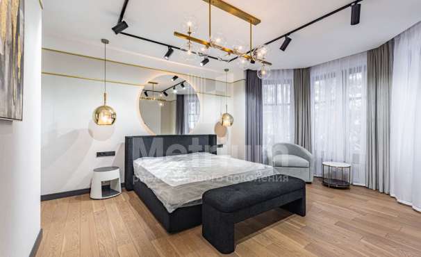 | Этажи/уровни: | 1-й этаж: холл, гостевой с/у, 2 гардеробных; SPA-зона: бассейн с сауной, душевой и с/у; кухня-столовая, гостиная, спальня с гардеробной и ванной комнатами, кинотеатр, постирочная. 2-й этаж: гостиная, гостевая спальня с ванной комнатой и гардеробной, детская спальня с ванной комнатой и гардеробной, мастер-спальня с ванной комнатой и гардеробной, бильярдная с выходом на террасу (эксплуатируемую кровлю). |