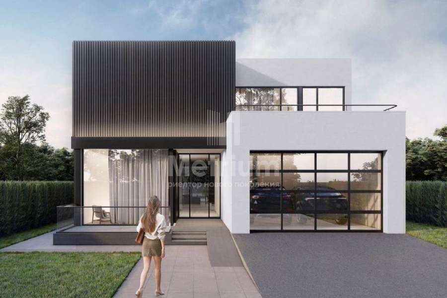 Эдельвейс - современный дом в стиле хай-тек с эксплуатируемой кровлей, выполненный в светлых тонах.