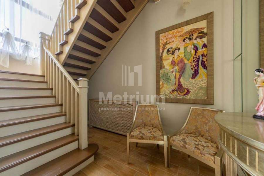 Уютный таунхаус в поселке Новоархангельское общей площадью 214.70 кв.м. Участок 4.8 сотки, находится всего в 7 км от МКАД по Новорижской магистрали. На первом этаже находится просторный холл, гостиная с выходом на веранду, функциональная кухня, санузел, постирочная, три кладовые, бойлерная и чемоданная. На втором этаже — три уютные спальни, кабинет и большой санузел.