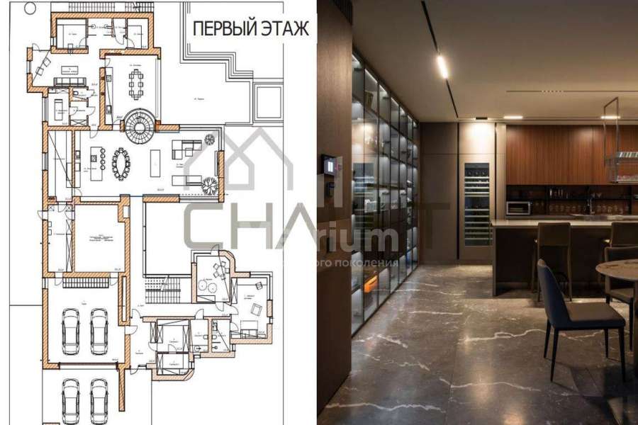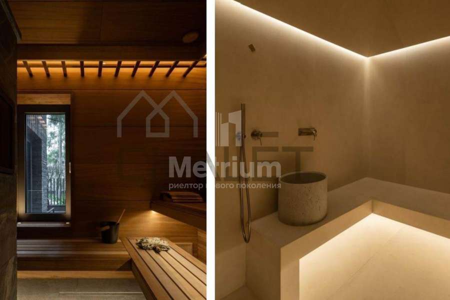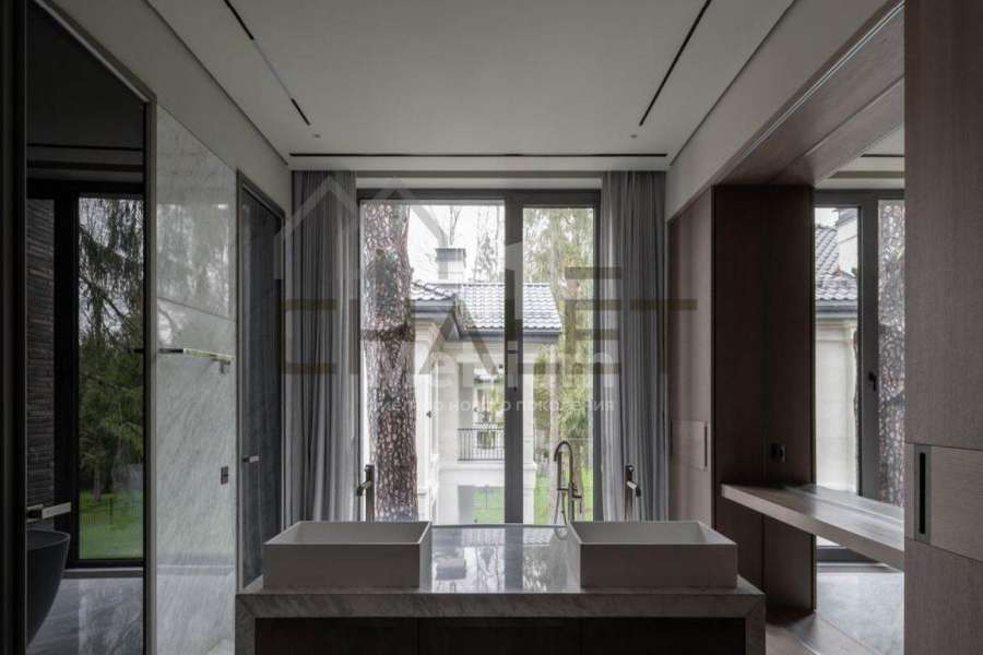 Дом в КП Ново-Успенский. Лесной участок с ландшафтным дизайном. Площадь дома 1000 кв.м. Количество спален - 5. Гараж на 2 м/м. Навес на 2 м/м. Зона барбекю. Спа-зона с русской баней и хамамом
