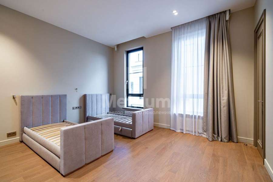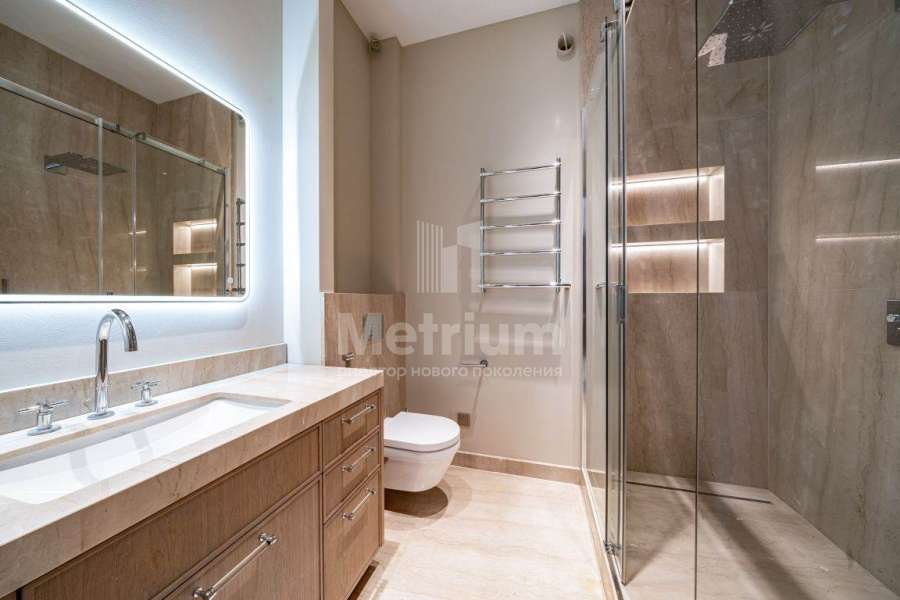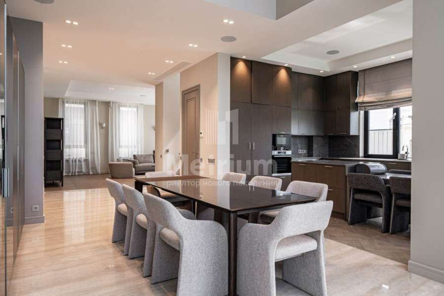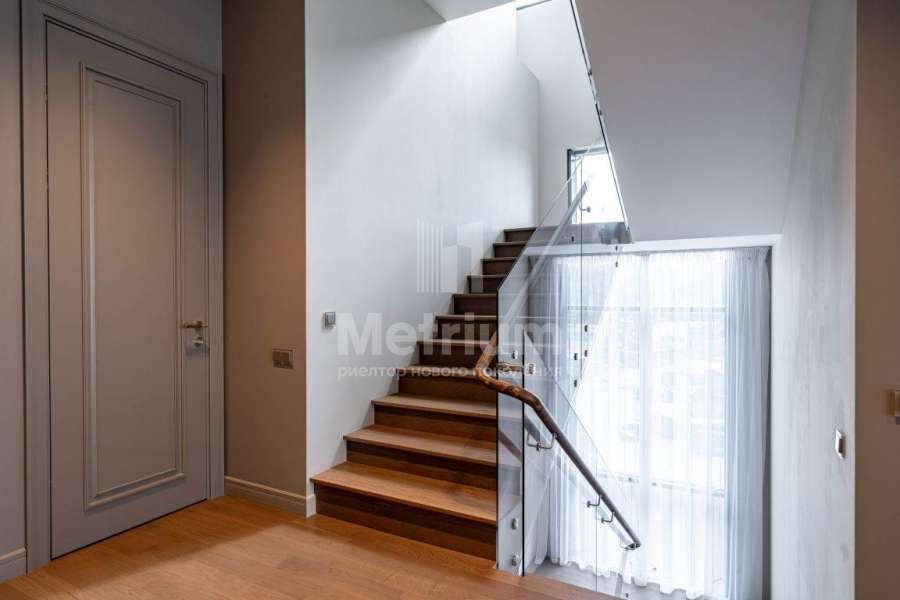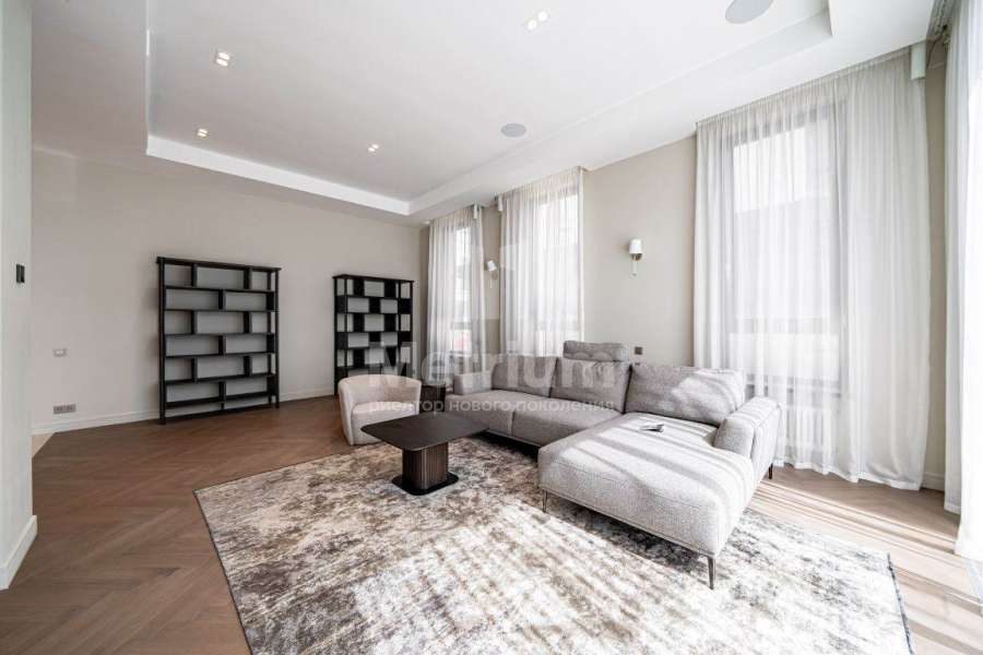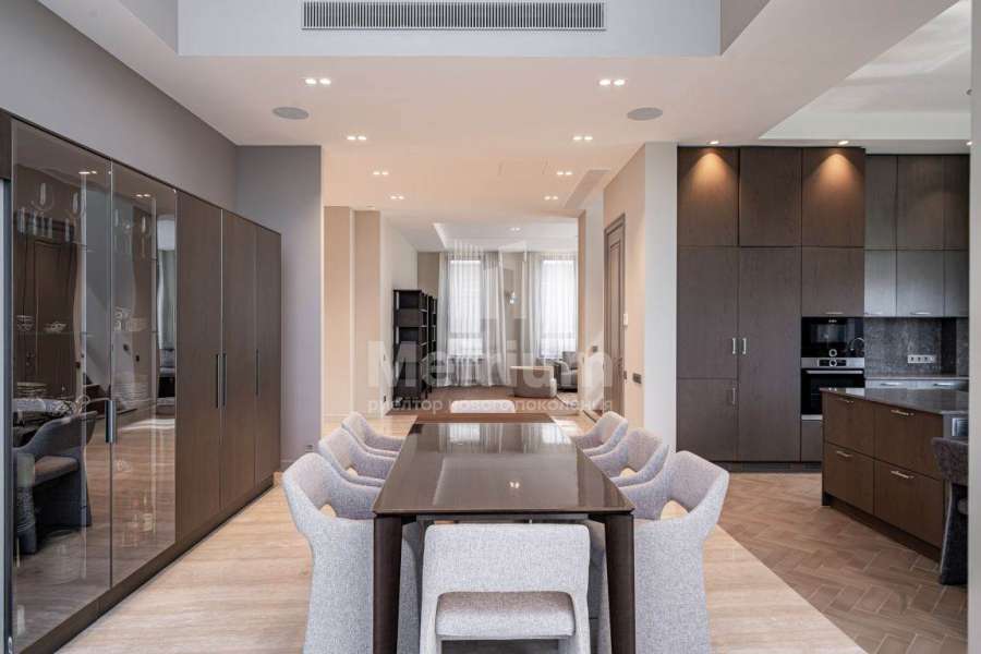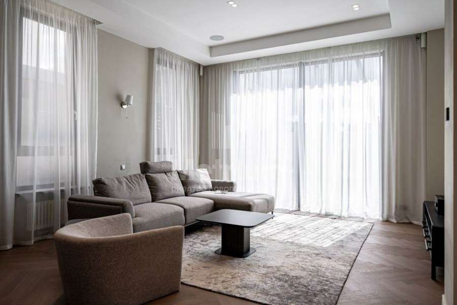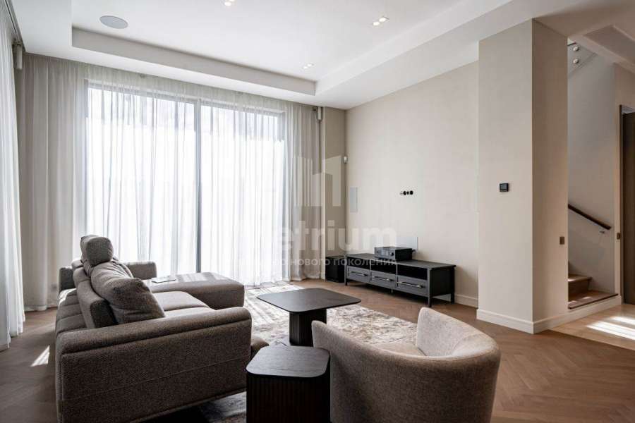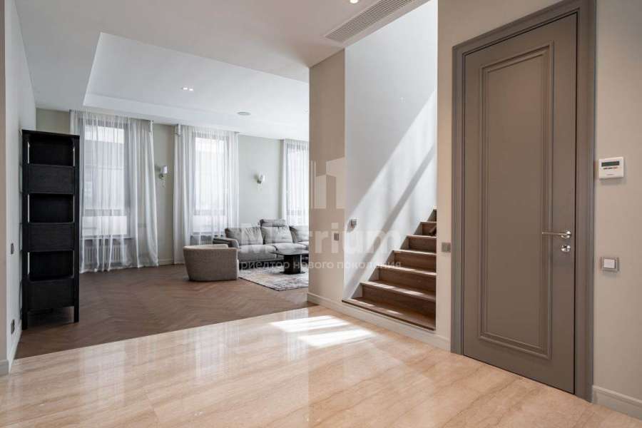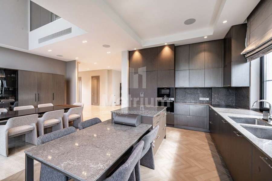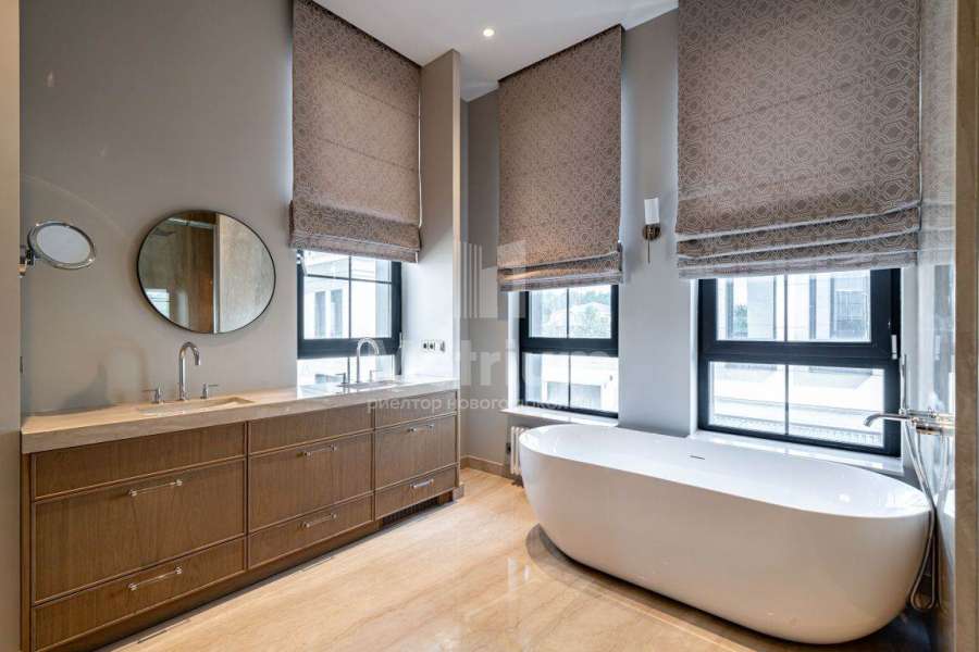 Дизайнерская отделка выполнена в современной стилисте исключительно из дорогих натруальных материалов (травертин мрамор, дубовый паркет). Кухня и все гардеробные комнаты - Giulia Novars. Премиальная сантехника в санузлах Villeroy & Boch, Gessi. Высокие скрытые двери UNION.