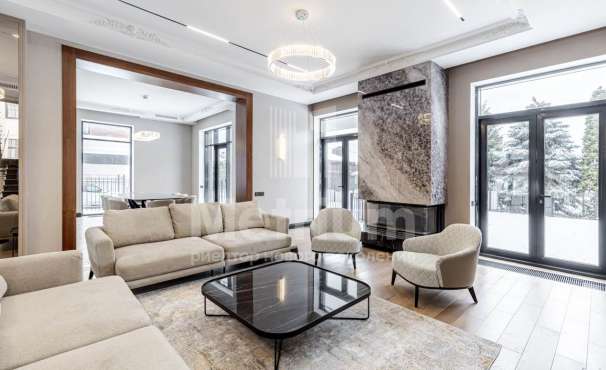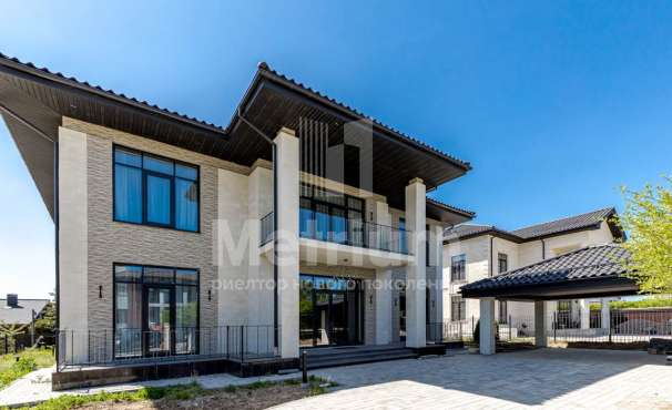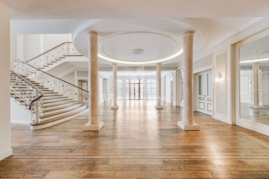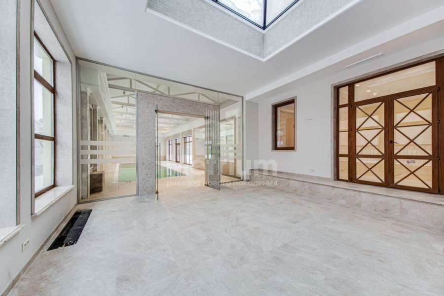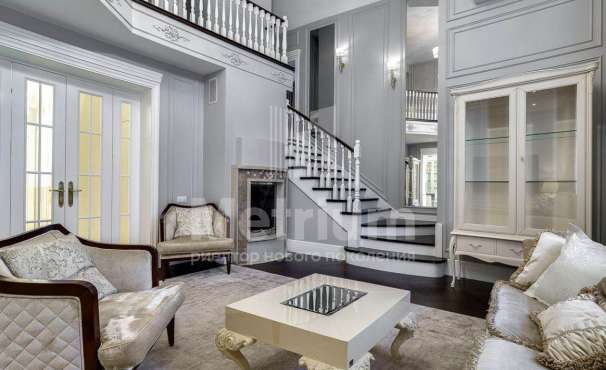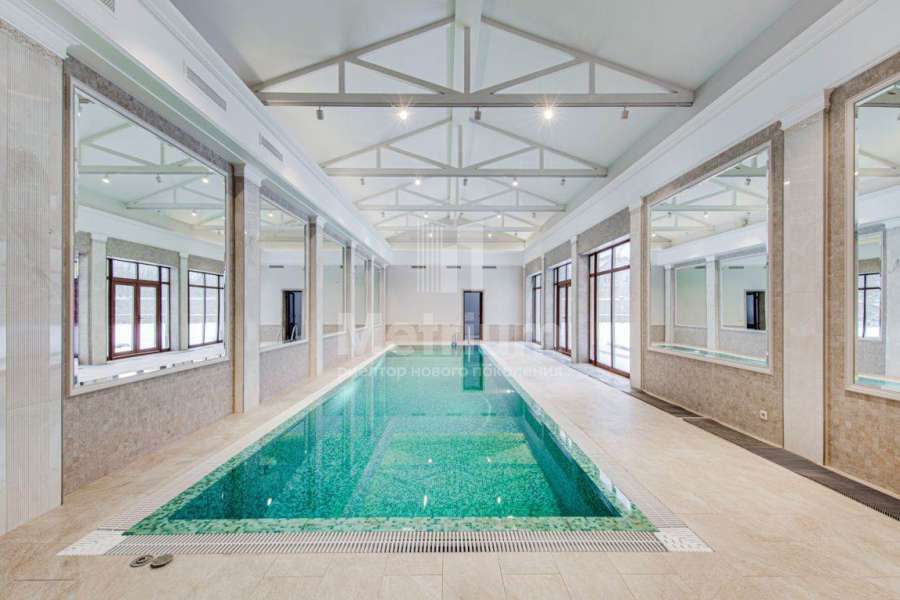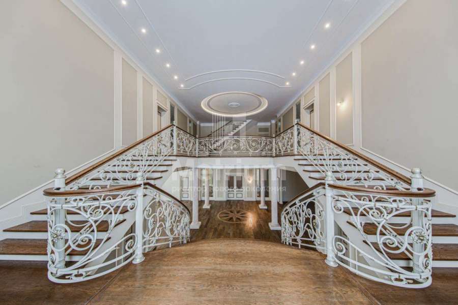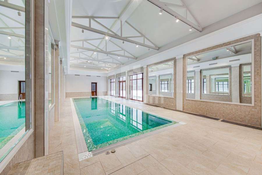 3-уровневый дом с площадью участка 24 сотки с ухоженными газонами. Единый комплекс общей площадью 1050 кв.м. составляет 3-уровневый дом, с 3-мя просторными балконами, включающий столовую, гостиную с камином, кухню, спальню с с/у, 2 комнаты, гостевой с/у, постирочную, холл на 1 этаже и 5 комнат, 3 с/у, гардеробную на 2 этаже. На 3 уровне - помещения для кабинета, кинотеатра, детской игровой. В комплексе также имеются зимний сад со вторым светом, бассейн 12м, помещения для сауны, тренажерного зала, комнаты отдыха, 2 с/у, помещения для персонала, насосная, бойлерная, гараж 43 кв.м. Дом выполнен в благородном старинном архитектурном стиле, есть все центральные коммуникации, отопление, водоснабжение, электричество.