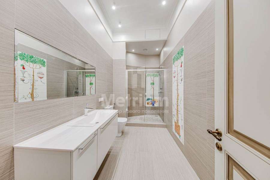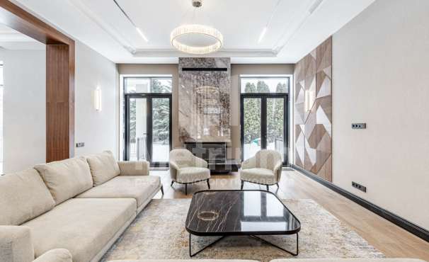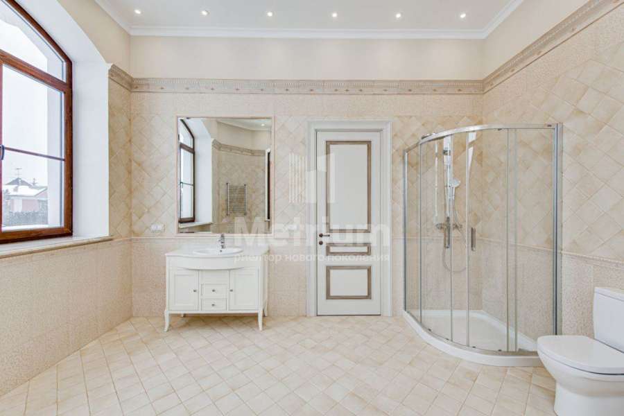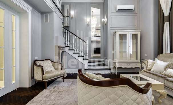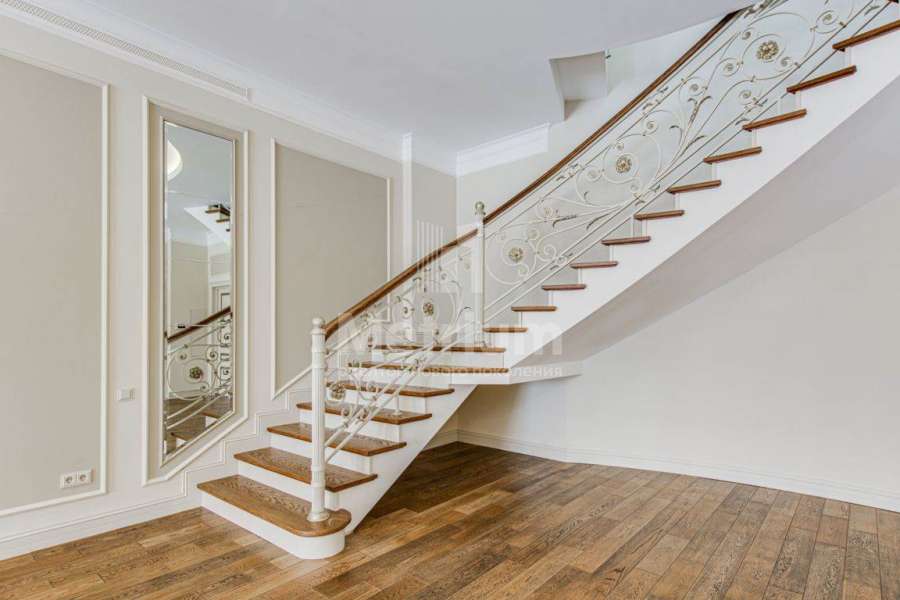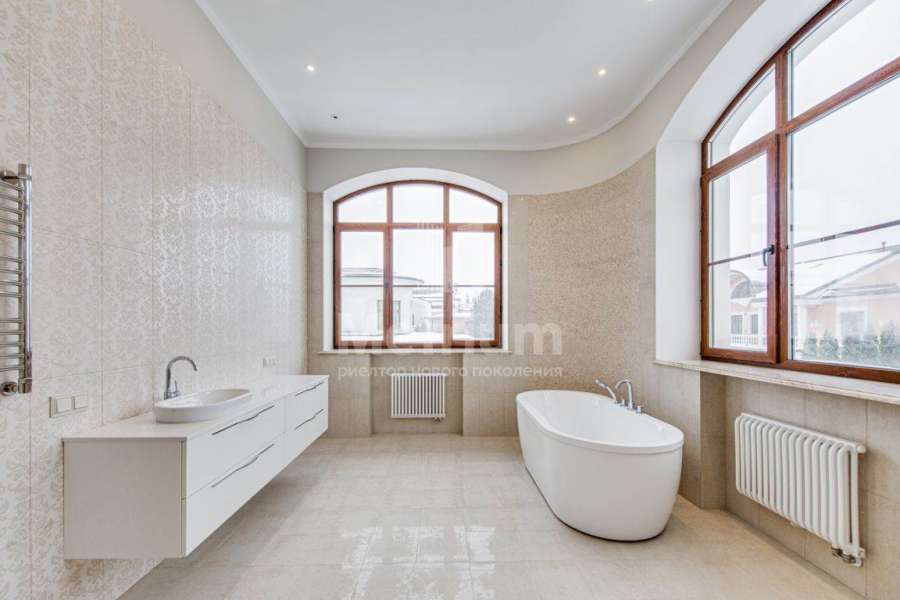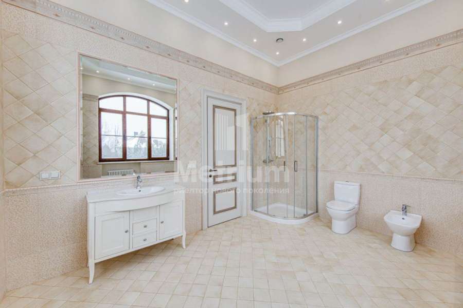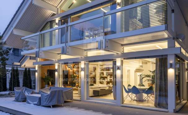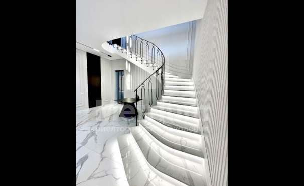 3-уровневый дом с площадью участка 24 сотки с ухоженными газонами. Единый комплекс общей площадью 1050 кв.м. составляет 3-уровневый дом, с 3-мя просторными балконами, включающий столовую, гостиную с камином, кухню, спальню с с/у, 2 комнаты, гостевой с/у, постирочную, холл на 1 этаже и 5 комнат, 3 с/у, гардеробную на 2 этаже. На 3 уровне - помещения для кабинета, кинотеатра, детской игровой. В комплексе также имеются зимний сад со вторым светом, бассейн 12м, помещения для сауны, тренажерного зала, комнаты отдыха, 2 с/у, помещения для персонала, насосная, бойлерная, гараж 43 кв.м. Дом выполнен в благородном старинном архитектурном стиле, есть все центральные коммуникации, отопление, водоснабжение, электричество.