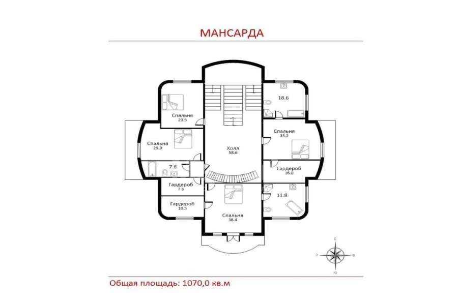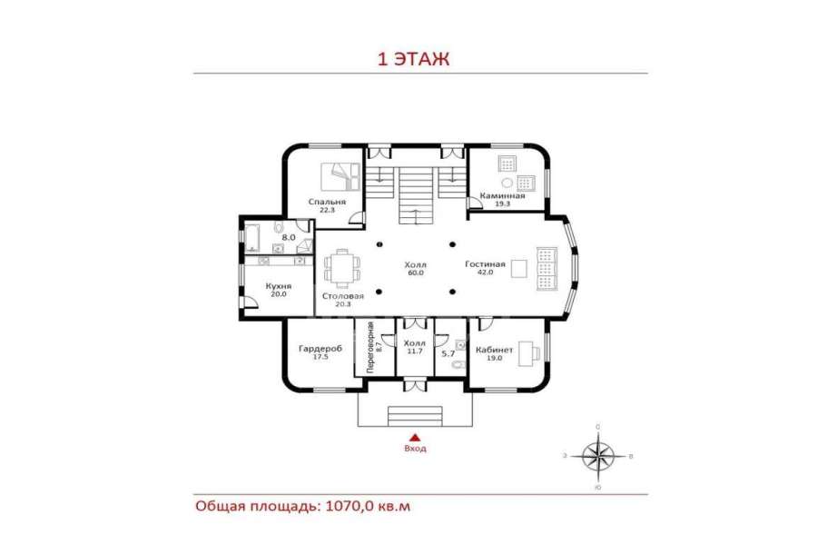 | Площадь дома: | 1070 кв. м |
