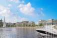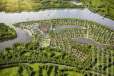 Вид на залив Волги (на яхт-клуб) и на стрелку реки Волга с пляжем.