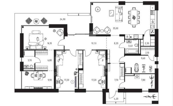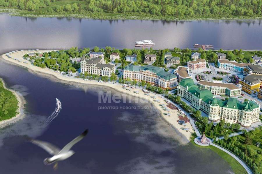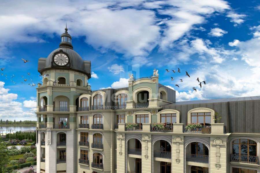 Видовой апартамент, все окна выходят на Волгу. Из окон полукруглой гостиной открывается панорамный вид на Екатериновку. Спальня хозяев, расположена в удалении от общественных зон, что дарит владельцам особую приватность. Полукруглый балкон, собственный кинотеатр, индивидуальный доступ на этаж. Эркеры в спальнях создают неповторимый уют. В доме всего три подобных апартамента.
