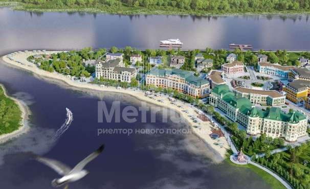 Апартамент с большой кухней-гостинной с камином и спальней хозяев, создают ощущение простора. Практически из всех комнат есть выход на большой балкон, с которого открываются виды на залив. Из одной спальни открываются виды на Волгу. Вид на залив Волги (на яхт-клуб) и вид на Волгу.