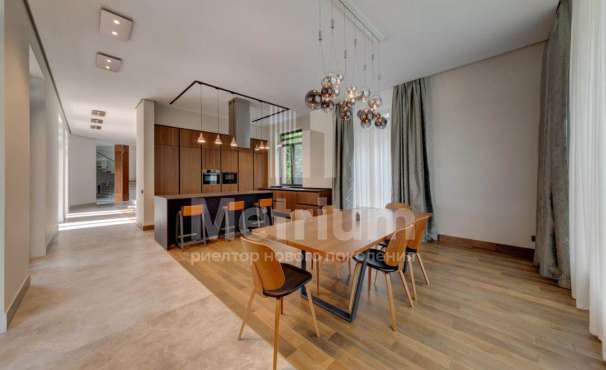 Коттедж полностью меблирован и оснащен электробытовой техникой. Интерьеры дома в классическом стиле. Высокие потолки, более 5 метров. На земельном участке выполнены высококлассные ландшафтные работы, проложены прогулочные дорожки, сделано уличное освещение. Построен гостевой дом 218,9 кв.м. с бассейном, сауной и апартаментами для обслуживающего персонала.