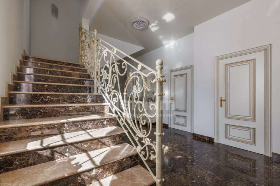 | Этажи/уровни: | Цоколь: помещение СПА, сауна, спортивный и бильярдный залы, 2 ванные комнаты, комната для обслуживающего персонала, помещения технического и бытового назначения; 1 этаж: каминный зал, столовая, кухня, холл, спальная комната, гардеробная комната, ванная комната, зимний сад, крытые террасы, веранды, гараж на 2 автомобиля; 2 этаж: спальная комната владельцев с ванной и гардеробной комнатами и балконом, холл-библиотека, 2 спальные комнаты, 2 ванные комнаты, 2 гардеробные комнаты, балкон; Мансарда: студия площадью более 70 кв.м. |