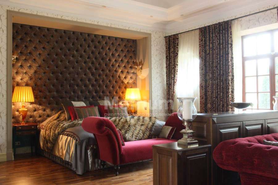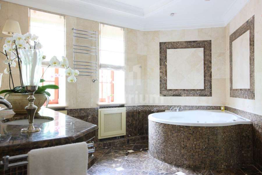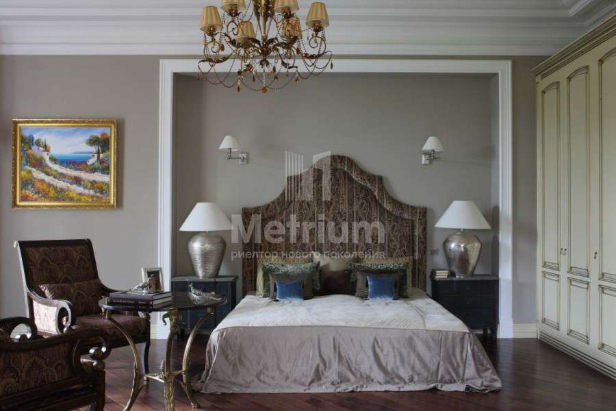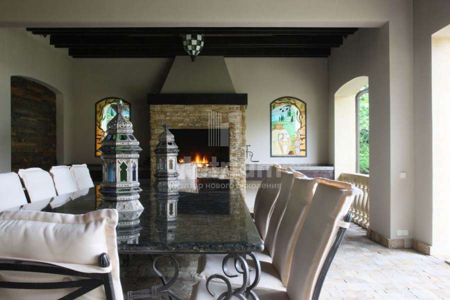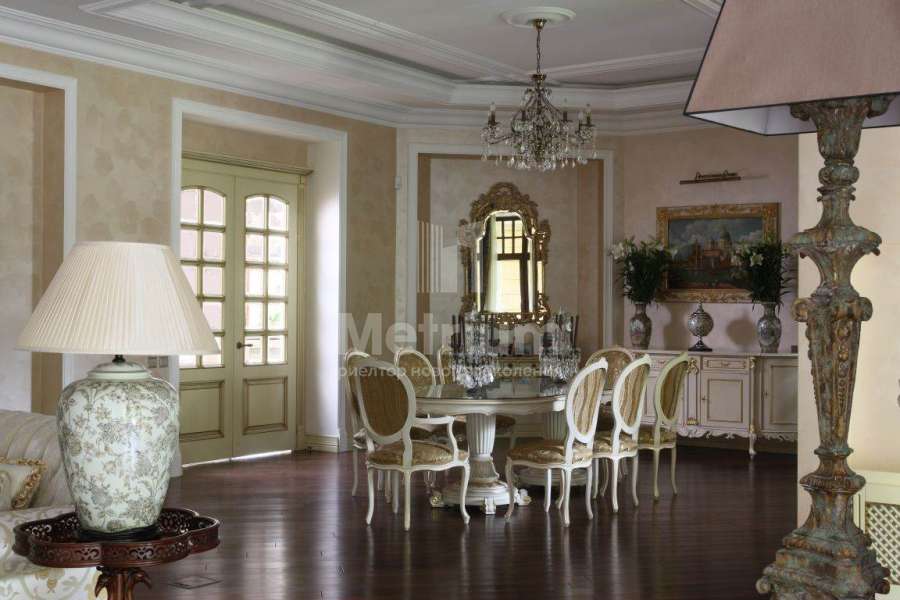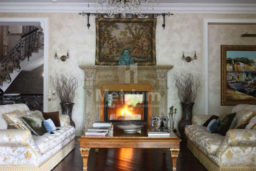 Загородный дом в коттеджном поселке Павлово (Новорижское шоссе, 14 км от МКАД). Вся мебель в доме выполнена производителями из Италии и Америки. Диваны представлены брендом Zanabony, а кухня – итальянским брендом Ca d’Oro. Зеркала привезены из Венеции, картины – из Франции, а вазы и предметы декора из Марокко.