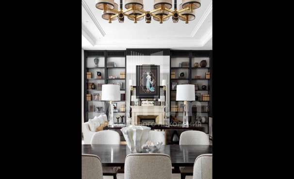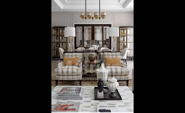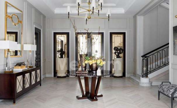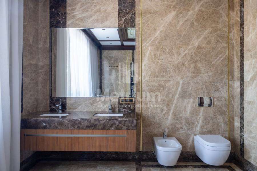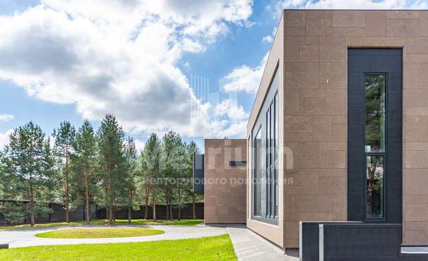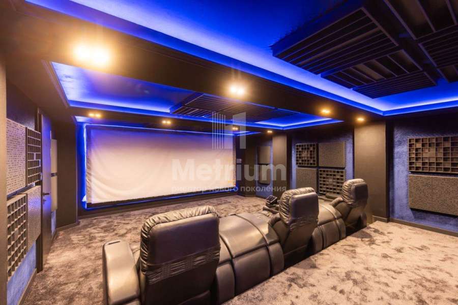 Dolby Atmos 14.4.6 с 8к проектором. Дом предоставляется «под ключ» с мебелью. Комнаты дома отличаются простором, высотой потолков, открытыми террасами и балконами. В отделке интерьеров используются качественные и натуральные материалы, в том числе мрамор, массив дерева, мозаика и дорогие чугунные батареи. Фасад дома выполнен из клинкерного кирпича, крыша — стропильная система из металлоконструкции. Сантехника в доме представлена европейскими производителями, освещение — американскими.