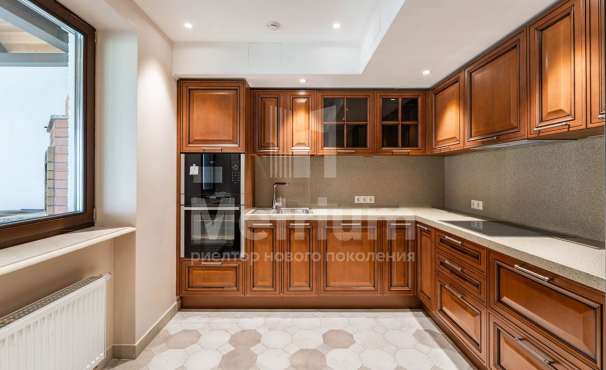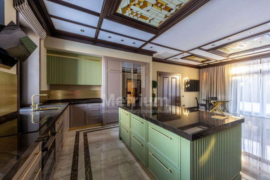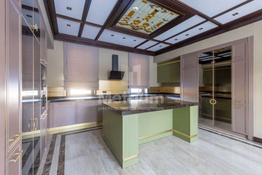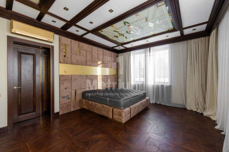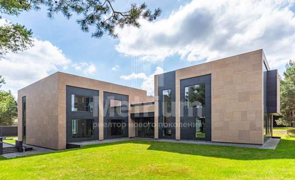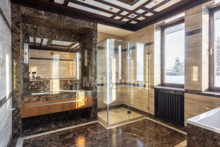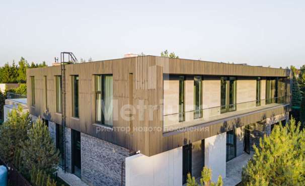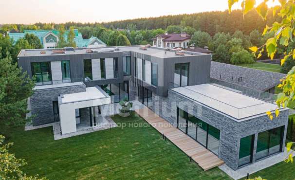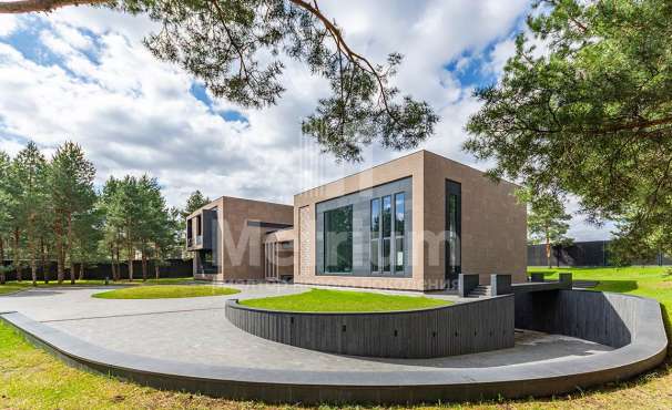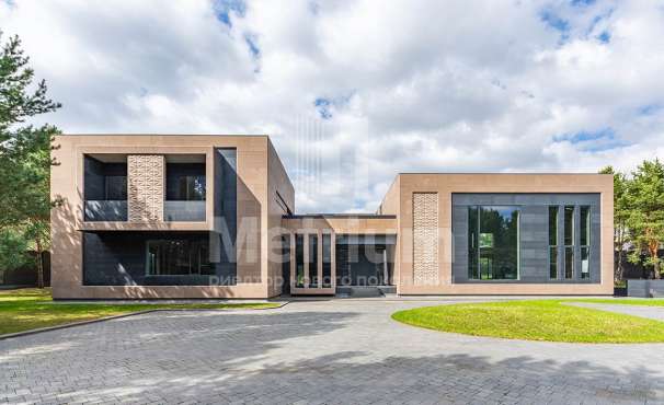 Дом в посёлке «Никольская слобода» в 9 км от МКАД по Новорижскому шоссе. В доме общей площадью 1800 кв.м в стиле Райт расположены бильярдная, зона отдыха, кальянная, гостиная с камином, кухня, столовая, выход на террасу с