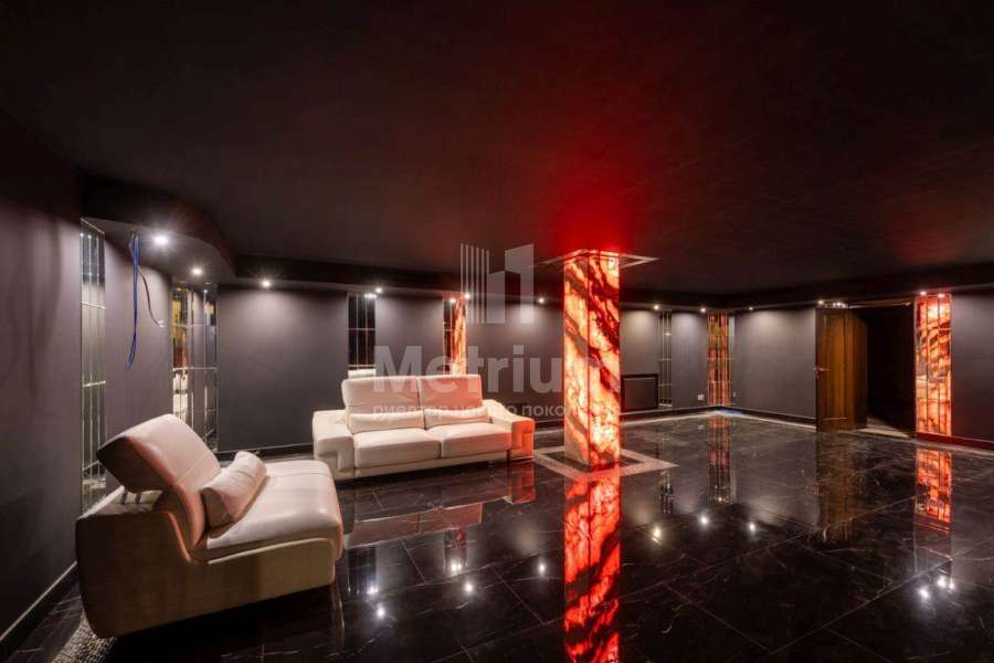 | Этажи/уровни: | Цоколь: бильярдная, зона отдыха, кальянная, кинотеатр, тренажерный зал, 2 с/у, раздевалка, душевая, серверная, котельная; 1 этаж: прихожая, с/у, гардеробная, гостиная с камином, кухня, столовая, выход на террасу с джакузи и зоной барбекю, библиотека, гостевая спальня с с/у и гостиной, переход в спа-зону: комната отдыха, с/у, бассейн (15х6 м), выход на террасу, сауна, хамам, купель; 2 этаж: холл, мастер-спальня с с/у, гардеробной и балконом, 2 спальни, с/у |