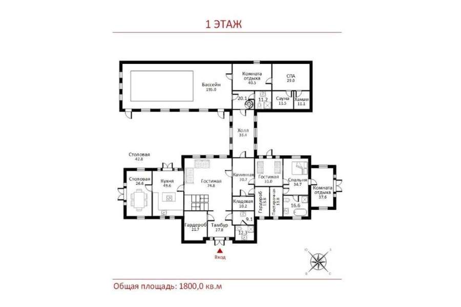 | Площадь дома: | 1800 кв. м |