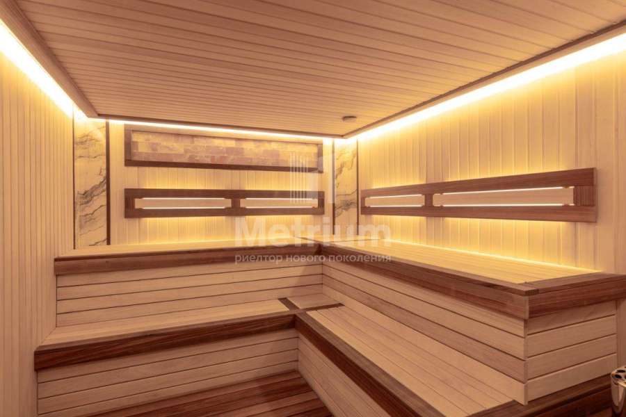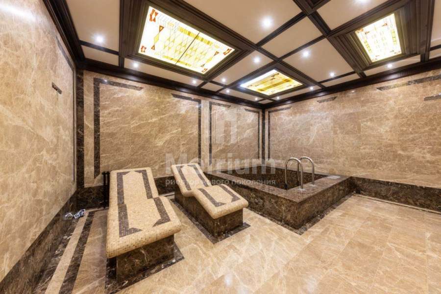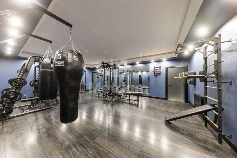 джакузи и зоной барбекю, библиотека, гостевые спальни, спа-зона с бассейном, сауной, хаммамом. На цокольном этаже расположены 3 спортзала с профессиональными тренажерами Technogym, винная, танцпол, hi-end кинозал