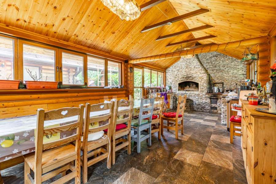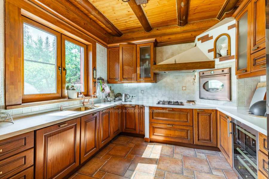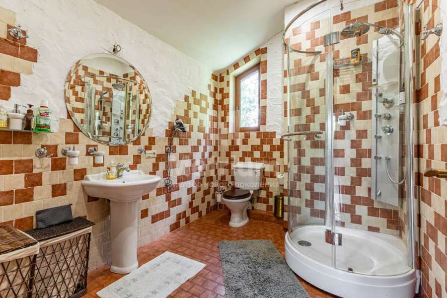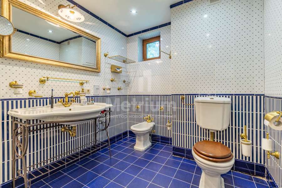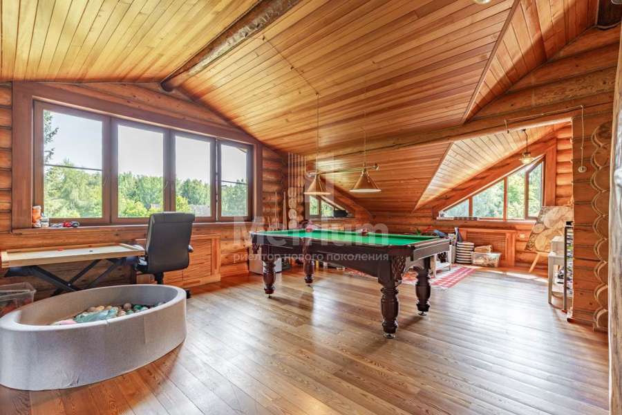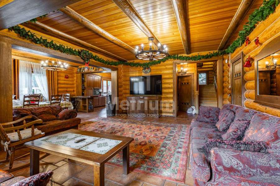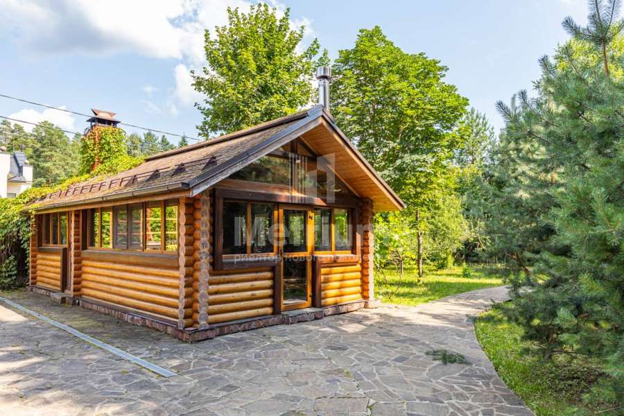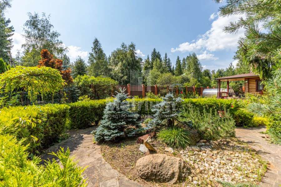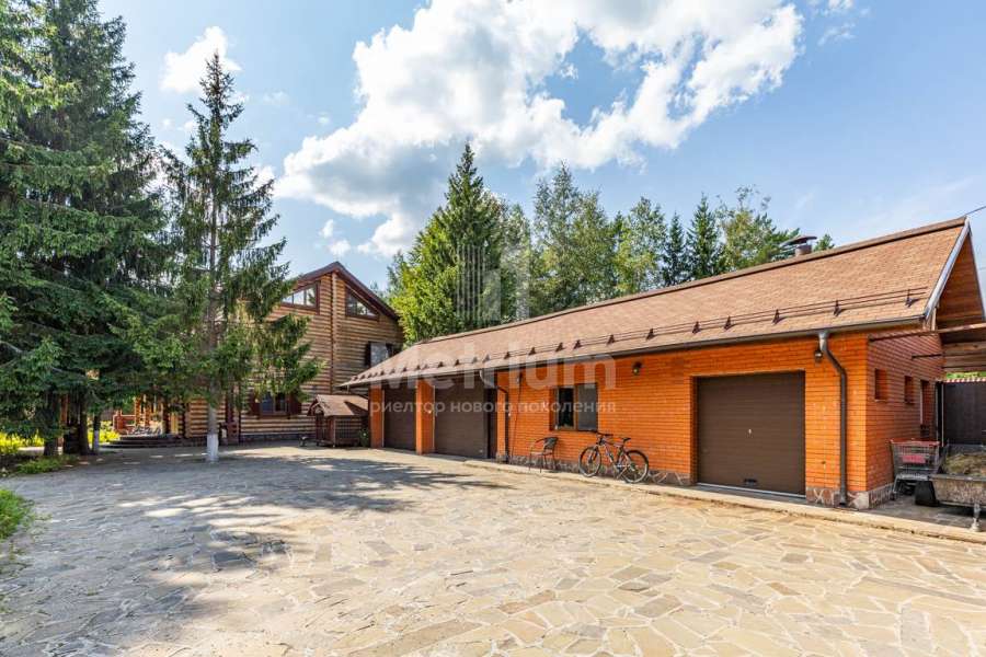 Дом с 9 спальнями в глубине поселка, в удалении от шума автотрассы. Земельный участок, площадью около 40 соток с ландшафтным дизайном с хвойными деревьями, декоративными экзотическими растениями, плодовыми деревьями и кустарниками. На земельном участке расположены строения, общей площадью 790 м2: