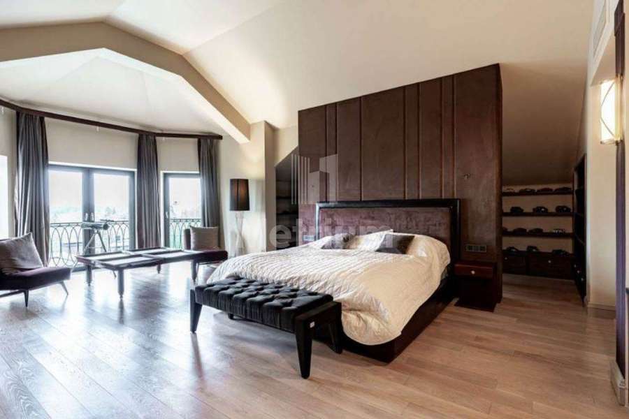 | Этажи/уровни: | Цоколь: гардеробная, постирочная, домашний кинотеатр, ванная комната, комнаты для бытовых нужд, бойлерная, оружейная комната, технические помещения вентиляции и бассейна, подземный проход в зону СПА; 1 этаж: прихожая, гардеробная, большой холл, гостиная с камином и выходом на закрытую летнюю террасу, столовая и кухня с выходом на террасу, кладовая, с/у, кабинет, два гаража на шесть автомобилей, блок для обслуживающего персонала; 2 этаж: три спальни с ванными комнатами и гардеробными, большая терраса; Мансарда: большая игровая комната, 2 спальни с ванными комнатами, гардеробная, кабинет, комната хранения. |
