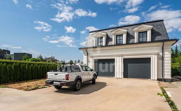 дом оборудован приточно-вытяжной системой вентиляции с кондиционированием. На участке прямоугольной формы выполнен ландшафтный дизайн, высажены декоративные деревья и кустарники, газон, оборудовано ночное освещение, вымощены дорожки. Также предусмотрен открытый паркинг для автомобилей, 2 въезда на участок.