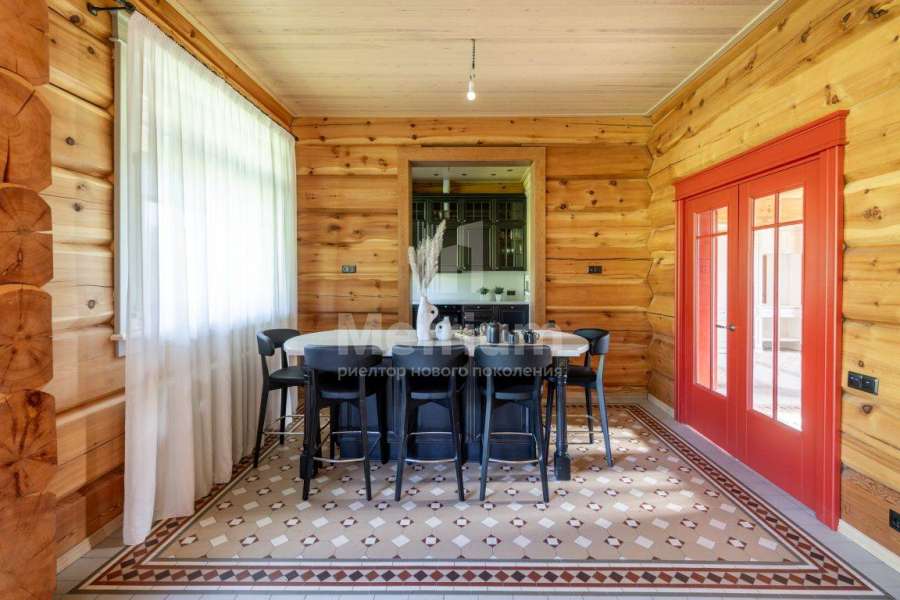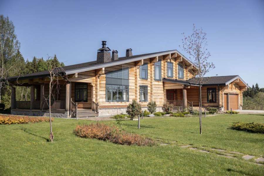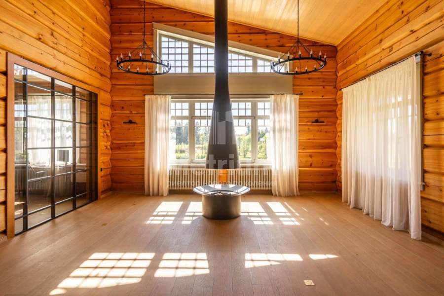 Дом 583 м² на участке в 90 соток в клубном поселке Ушаковские дачи в 58 км от МКАД по Новорижскому шоссе. Стены толщиной 28 см и высота потолков не менее 3,1 м создают просторное и светлое пространство. В доме расположены четыре уютные спальни, кабинет, просторная гостиная с центральным камином и бильярдная. Дом также оснащен современным кинотеатром.