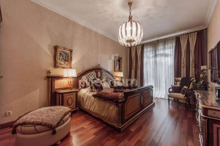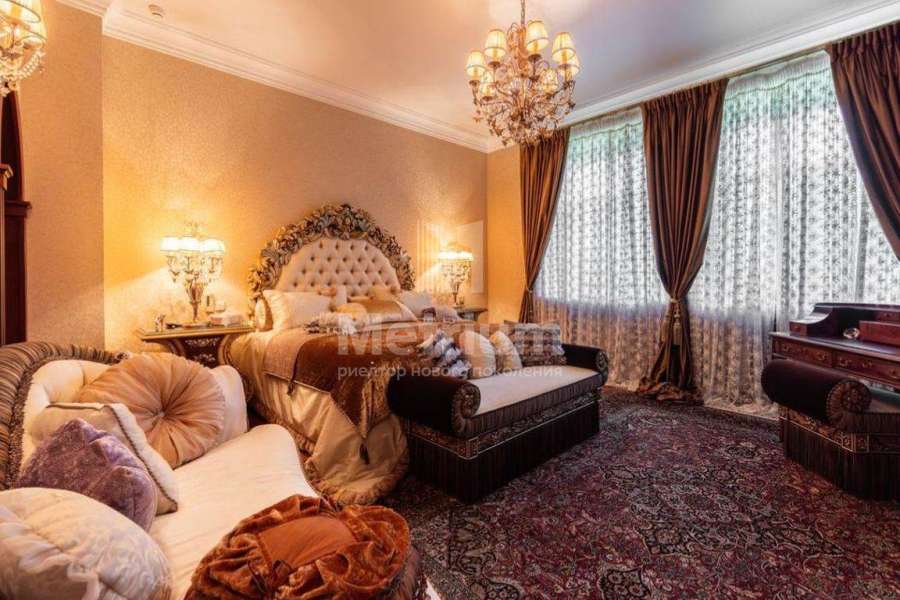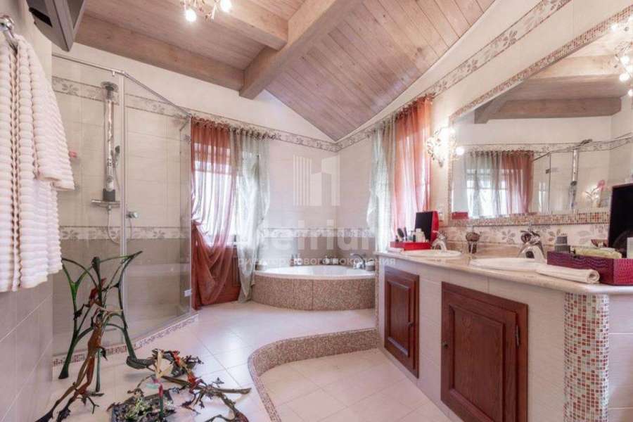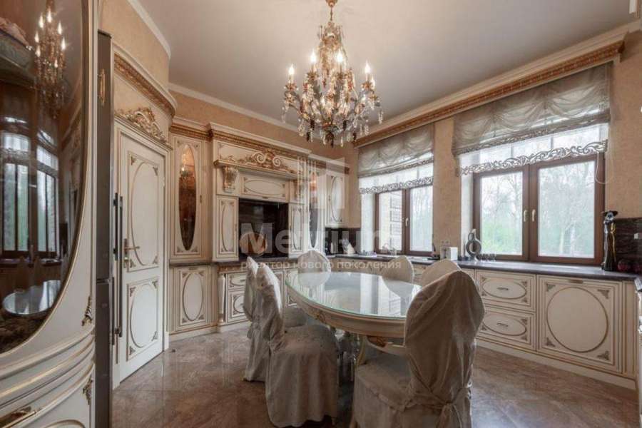 Дом 1050 м² на прилесном участке в 48 соток в камерном охраняемом посёлке в Подушкино в 8 км от МКАД по Подушкинскому шоссе. На цокольном этаже размещены, спортивный зал, кинотеатр, зона отдыха с бильярдной, баром и сигарной, санузел, комната для помощника с санузлом, гардеробом и спальней, кладовая, котельная, чаша бассейна. На первом этаже находятся холл, гардеробная, кабинет, гостиная с камином и выходом на террасу, столовая, санузел, зона SPA с душевой, раздевалкой, сауной, бассейном длиной 12 метров, хаммамом. Второй этаж включает хозяйский блок, гостевой блок и две спальни. На участке в 48 соток выполнен ландшафтный дизайн, территория примыкает к лесу. На участке также находятся отдельный гостевой дом с гаражом на 2 м/м и крытая беседка. Подушкино – это стародачное место c удобным выездом на Рублево-Успенское шоссе. Жителям поселка доступна вся инфраструктура Барвихи. Деревня окружена Подушкинским лесом с озером.