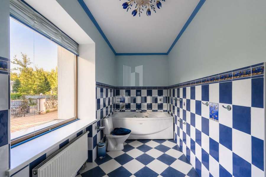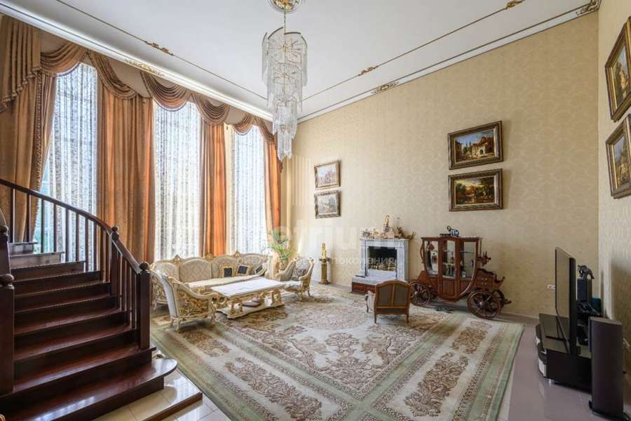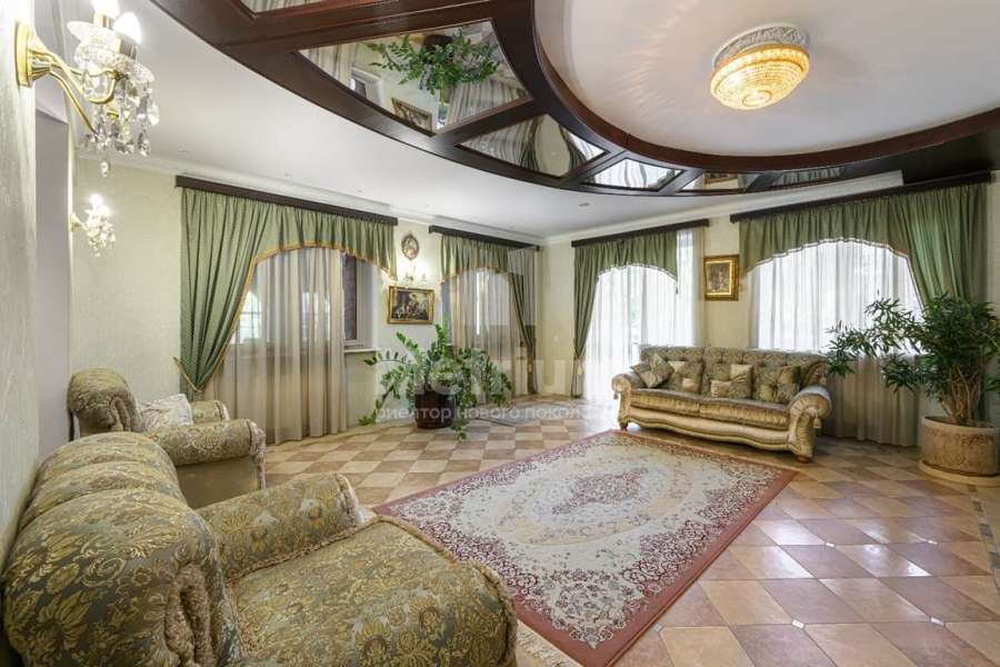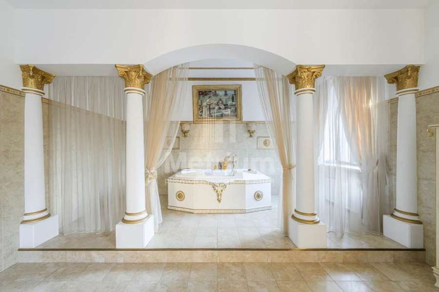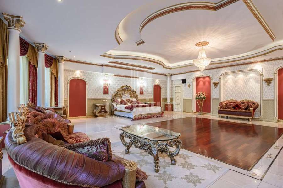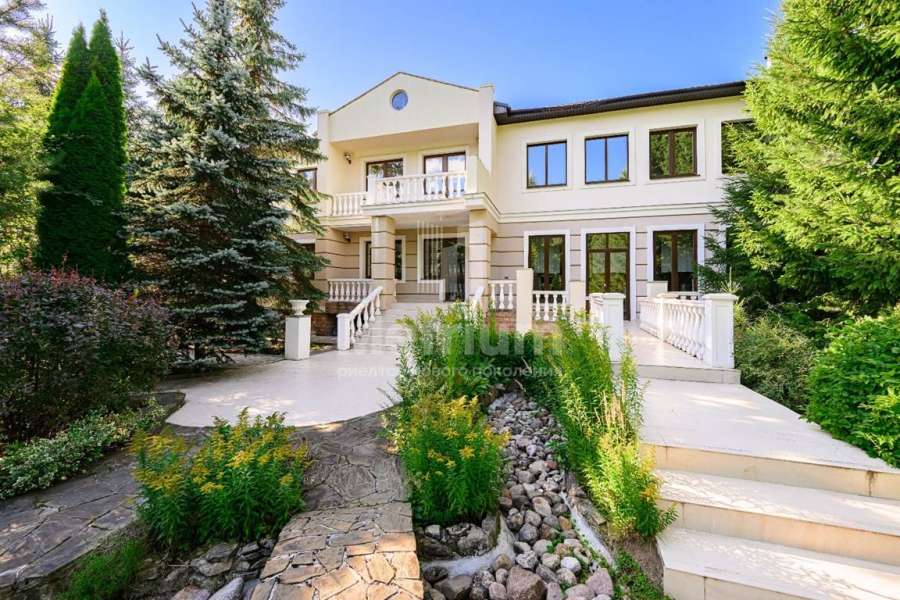 Дом, площадью 1250 кв.м на лесном участке 30 соток с вековыми елями в коттеджном поселке Голицыно-3 в 25 км от МКАД по Минскому шоссе. Полностью меблирована и готова к проживанию. В доме: 7 спален с удобствами, включая мастер-спальню площадью 100 кв.м, гостиная со вторым светом, барбекю-зал с выходом на участок, винный погреб, комната в восточном стиле, кинотеатр, зимний сад, спортзал и гараж на 2 м/м. Участок 30 соток утопает в зелени вековых голубых елей. Сделан ландшафтный дизайн, высажены хвойные и плодовые деревья, организована зона отдыха. Есть парковка на 7 м/м.