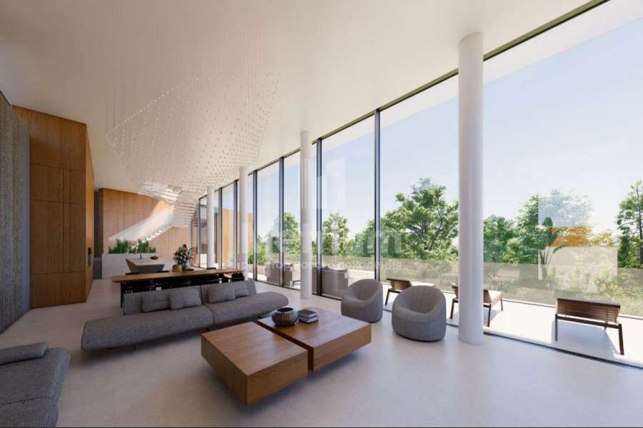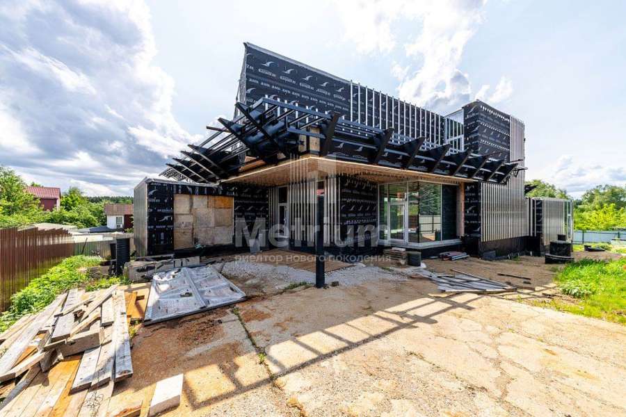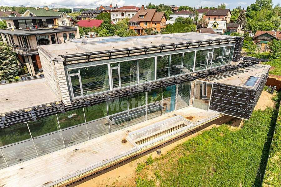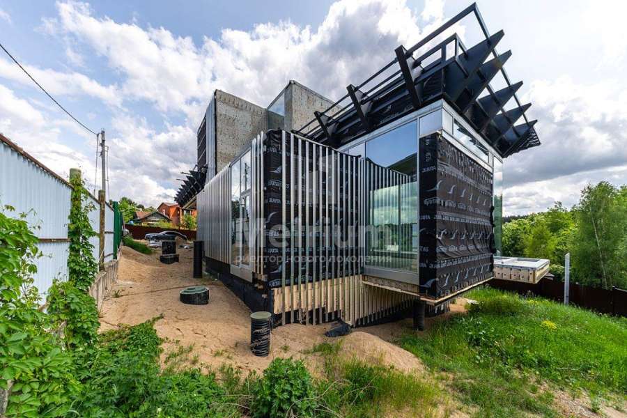 На данный момент возведена коробка, установлены панорамные окна, ведутся строительные работы, сейчас в разработке проект фасадного решение.