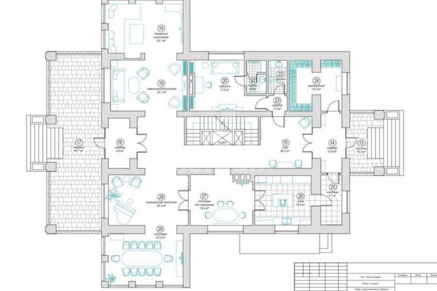 Загородный дом площадью 700 м2 построен на просторном участке 24 сотки в коттеджном посёлке "Рубин Эстейт". Коттедж представлен без отделки. В доме можно спланировать 5 спален, 2 кабинета или дополнительные спальни, SPA-зону с бассейном, домашний кинотеатр, квартиру для персонала и другие необходимые помещения.
