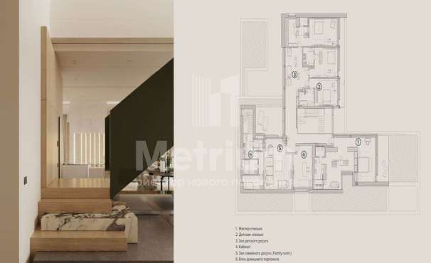 | Этажи/уровни: | 1 этаж: кухня-столовая-гостиная со вторым светом, 2 гостевые спальни, 2 с/у, 4 гардеробные, щитовая, выход на террасу. 2 этаж: вторая гостиная, библиотека, мастер-спальня с с/у и гардеробной комнатой, спальня с с/у и гардеробной комнатой, постирочная. |