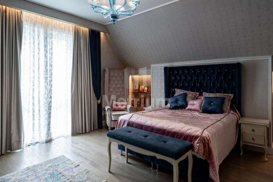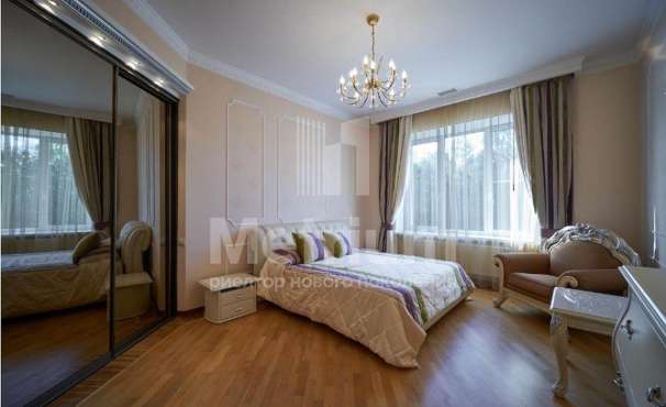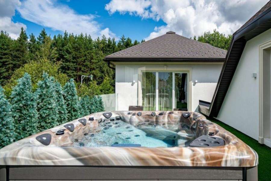 Дом в КП "Княжье Озеро" с 5 спальнями, общей площадью 550 м², представлен "под ключ" и расположен на видовом участке 11 соток. Функциональная планировка продумана для удобства большой семьи. Первый этаж: холл, гардеробная, кухня-гостиная, спальня, санузел, каминная зимняя терраса, гараж для 3-х автомобилей. Второй этаж: холл, мастер-спальня с 2-мя гардеробными, санузлом и выходом на открытую террасу с джакузи и 2 шезлонгами, 3 спальни, гардеробная, санузел. Большая площадь остекления и высокие потолки делают внутреннее пространство объемным, светлым и уютным. Установлена сантехника ведущих производителей.Через дом организован проход к гостевому дому. Центральные коммуникации позволяют жить на природе с городским комфортом круглый год: газ, электричество, водоснабжение и канализация. Также подключен высокоскоростной интернет. Система "Умный дом" позволяет регулировать температуру и влажность воздуха в каждой комнате. Для дополнительной безопасности монтированы датчики протечки воды. Установлены камеры внешнего видеонаблюдение для наилучшей безопасности.