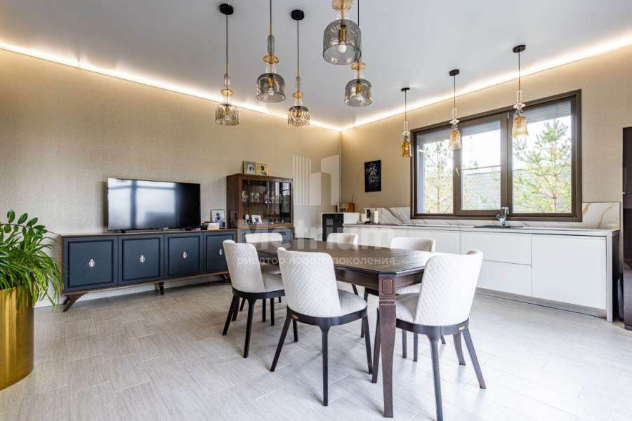 Новый современный дом, площадью 233 кв.м. участок 10 соток., 4 спальни, 2 с/у. Расположен в тихой части деревни, нет шума дороги, удобный выезд на платку.