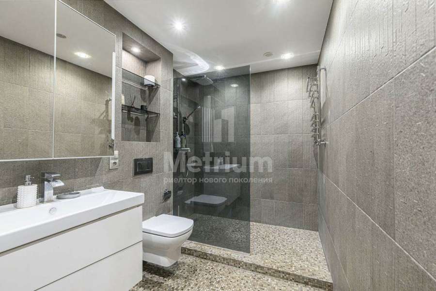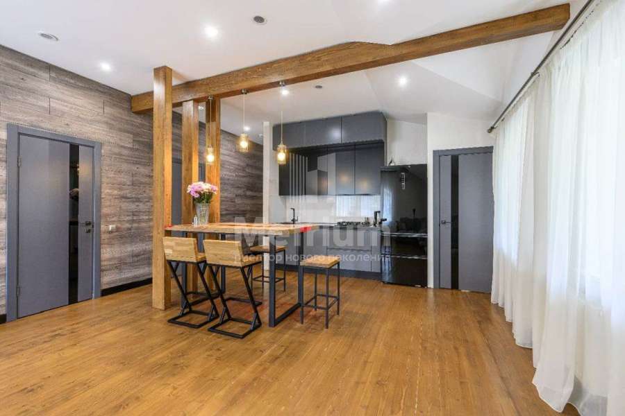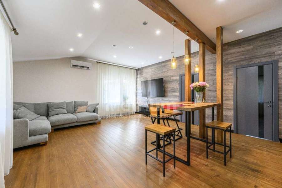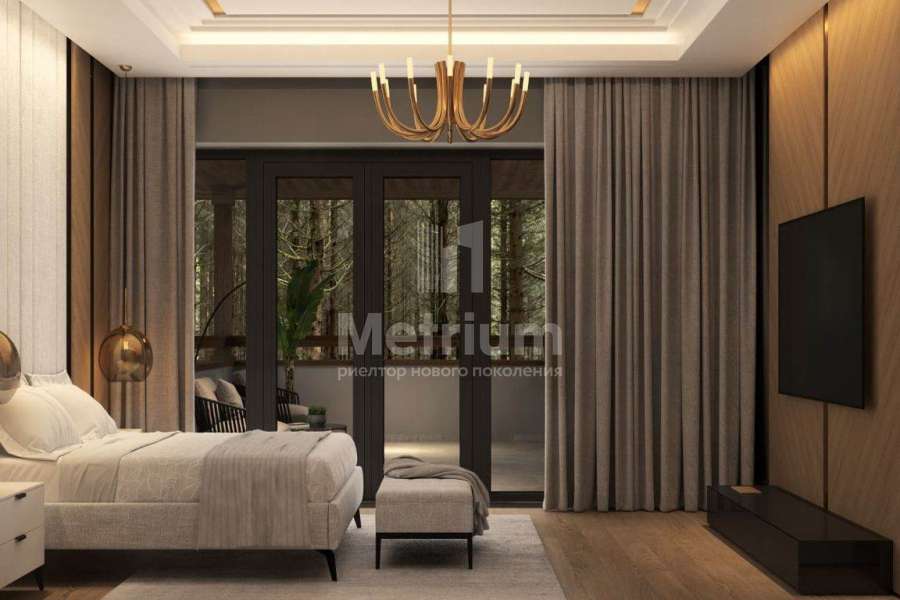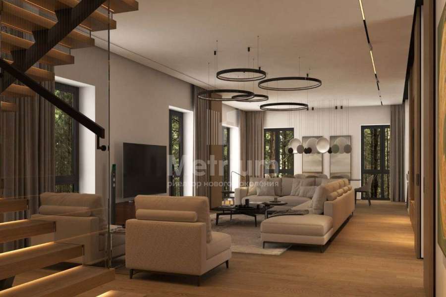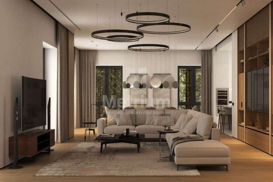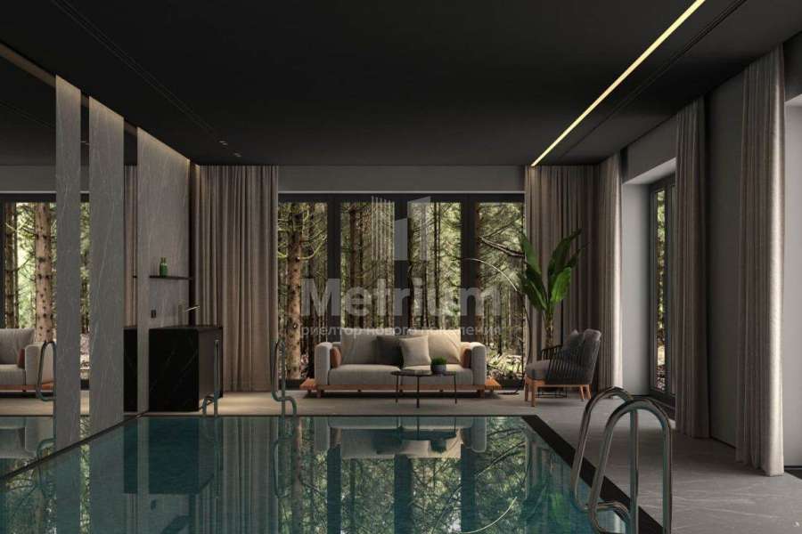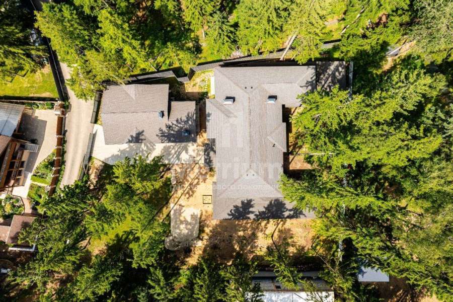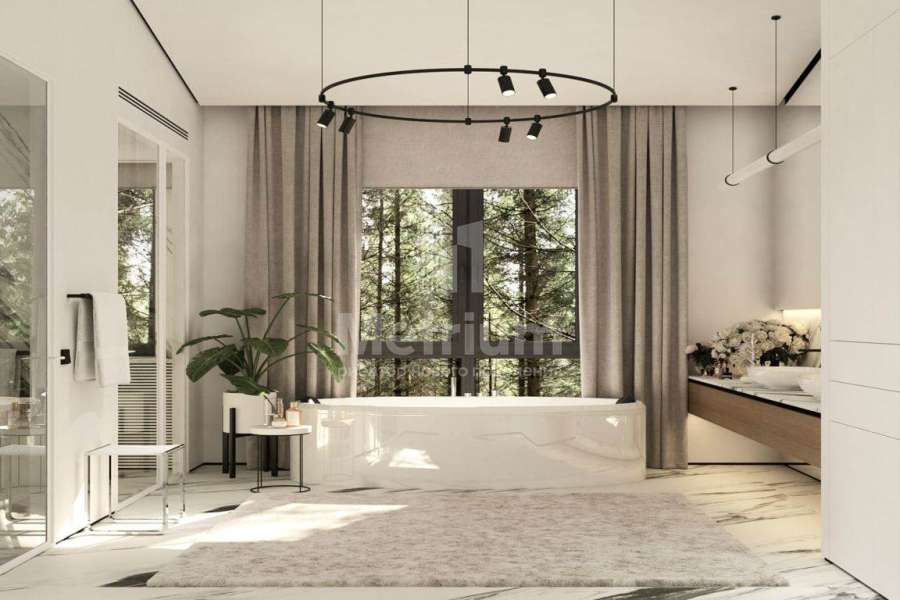 Домовладение общей площадью площадью 793 кв.м на лесном участке 21,5 сотка расположено на тихой тупиковой улице в Рожновке в 17 км от МКАД по Минскому шоссе. Основной дом 575 кв.м с современной архитектурой, панорамными окнами и высокими потолками: 4 метра на первом этаже и 4,5 на втором. Подготовлен под чистовую отделку. Внутренние стены оштукатурены, сделана разводка отопления, дом уже теплый. В основном доме: 4 спальни, объединенная гостиная-столовая, изолированная кухня с кладовой, спа-зона с бассейном и сауной, терраса, мастер-блок с собственным балконом и детский блок с игровой комнатой. Дополнительное строение 218 кв.м с отделкой “под ключ” - можно жить уже сейчас. На первом этаже расположен просторный гараж на 2 м/м и котельная, на втором этаже квартира для гостей или персонала, состоящая из кухни-гостиной, 2-х спален и с/у. Приватный участок площадью 21,5 сотка, при строительстве были сохранены вековые сосны. Сделан дренаж.