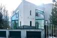 Кубический дом 675 кв.м с просторными террасами на участке 1,2 Га хвойного леса в 23км по Можайскому шоссе. Дорога к дому на территории покрыта тротуарной плиткой. Дом расположен в лесных угодьях общей площадью 1,2 Га. Можно выкупить соседний участок и сделать большой проточный пруд, есть проектная документация. Общий вид дома и дамбы с северо-восточной стороны. Установлен высокий шумоизоляционный забор.
