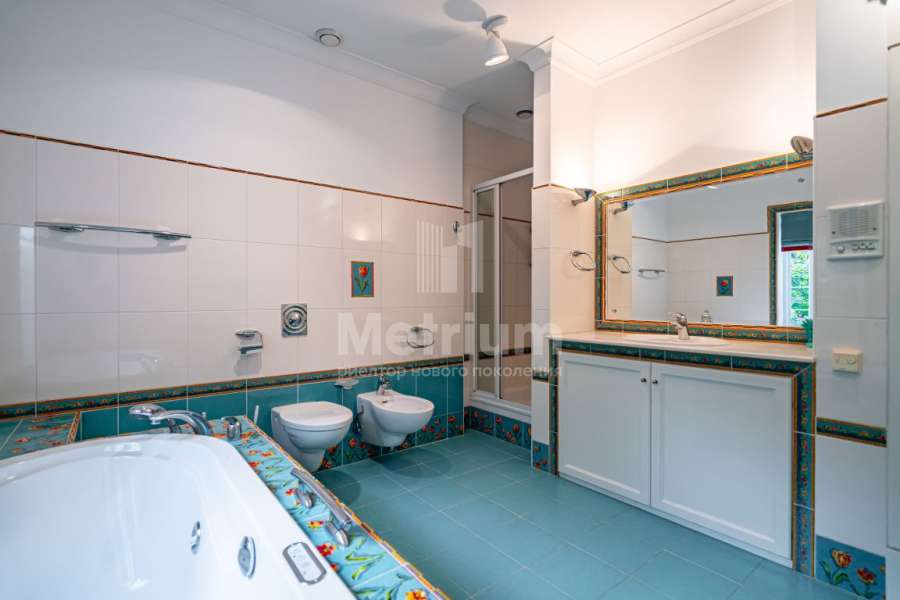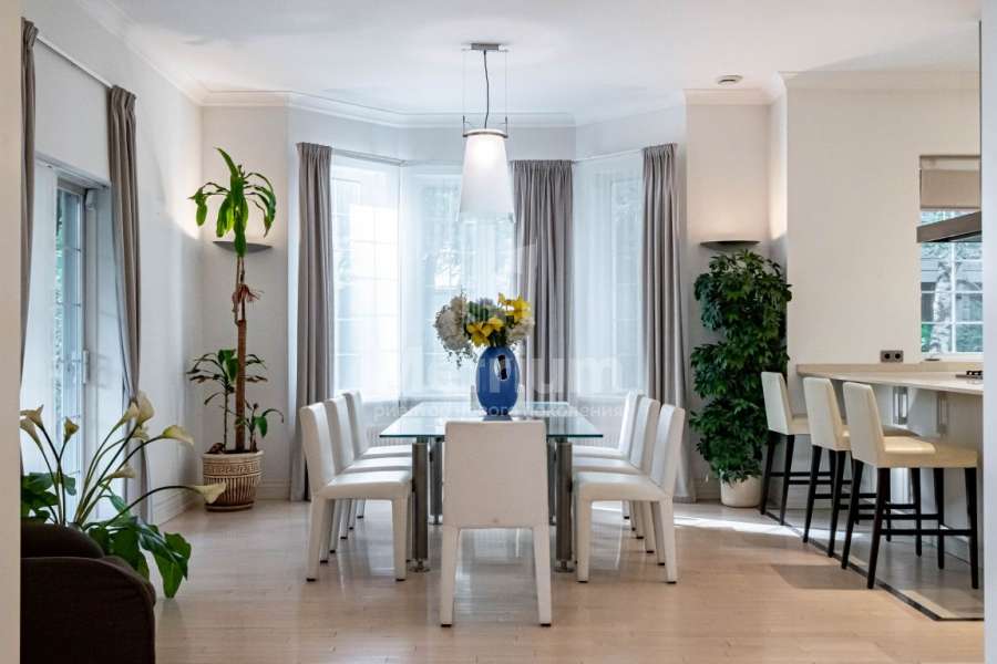 Дом "под ключ" с мебелью площадью 425 кв.м. на участке 15 сот в коттеджном поселке Николино. Планировкой предусмотрено 4 спальни, гостиная с камином и вторым светом, кухня-столовая с выходом на просторную террасу, кабинет, сауна при мастер-блоке, кладовые и гардеробные; гараж в контуре дома на 2 автомобиля. Отделка и интерьеры дома выполнены в светлых тонах, мебель первого этажа B&B Italia и Ceccotti Collezioni, на втором этаже - B&B Italia и Linea Light Group "Rose Collection", установлена вся необходимая бытовая техника бренда Miele. На лесном участке с ландшафтным дизайном вымощены дорожки, выполнено освещение и сделан дренаж.