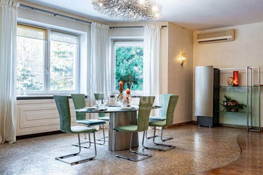Дом в деревне Усово, 11 км северо-западнее от Москвы по Рублево-Успенскому шоссе, до центра Москвы 20 минут. Охраняемый коттеджный посёлок. Дом построен в тихой части посёлка, где больше приватности, тишины. Участок - 27 соток с высокими деревьями, ландшафтным дизайном и ухоженным газоном. Гараж на 2 машины и блок персонала. Инфраструктура в пешей доступности. Есть возможность провести реконструкцию дома с нынешним основанием и перепланировкой либо реконструкцию дома с уменьшением площади. Так же есть готовый новый проект дома.