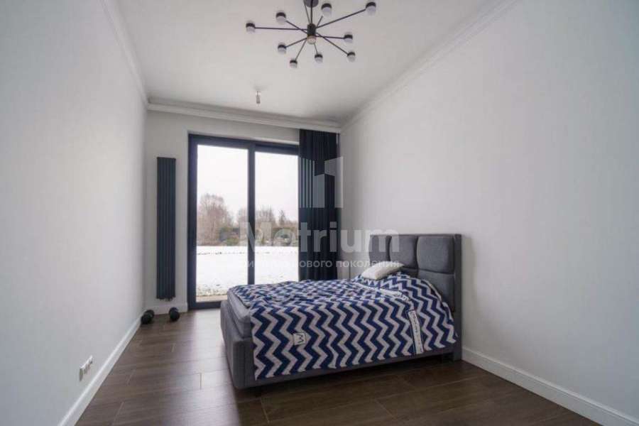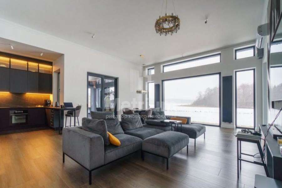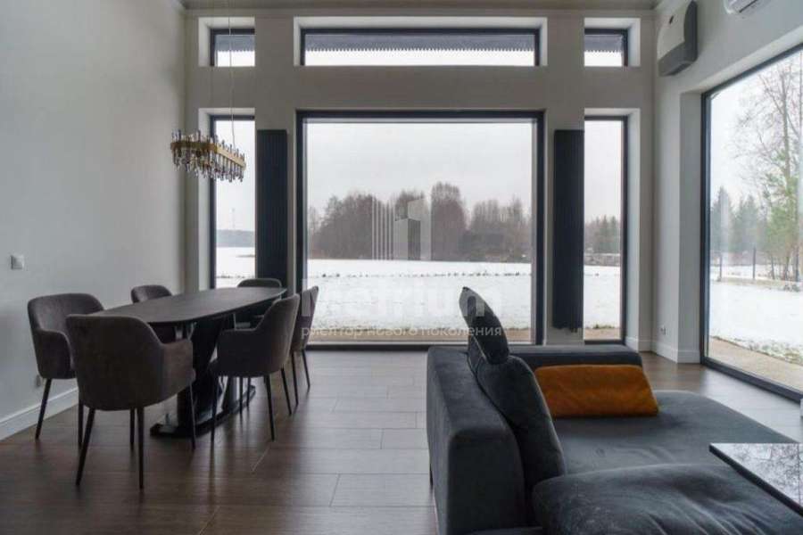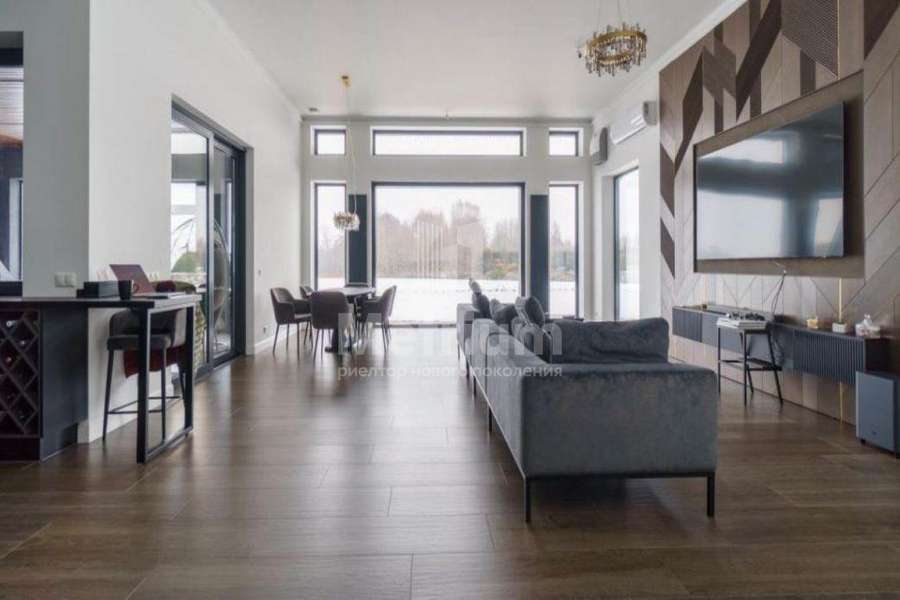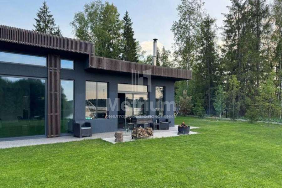 Дом непосредственно на береговой линии крупнейшего в Новой Москве Елизаровского водохранилища и в окружении леса, в камерном коттеджном поселке. Супер-видовой участок с ландшафтным дизайном. Одноэтажный каменный, практически новый дом, меблирован и полностью готов к проживанию. Архитектура и отделка в скандинавском стиле, с элементами минимализма. Высокие потолки, панорамное остекление из теплого алюминия. В поселке детская и спортивная площадки. Внутри окрашенные однотонные стены, комбинация почти белого и темных цветов, в санузлах керамогранит, имитирующий белый и черный мрамор. В гостиной в зоне ТВ дизайнерская стена-панель 4*3.5м из дуба с 3D-элементами. Полы - по всему дому керамогранит с водяным подогревом. Потолки отделаны гипсокартоном. Двери итальянские из фрезерованного МДФ белого цвета с золоченой фурнитурой и декором, контрастируют с мебелью черного цвета. Входная дверь с электронной защелкой и большой ручкой, с терморазрывом и вставкой из стеклопакета с закаленным стеклом. Сантехника премиальных европейских брендов (TECE, Roca, IDDIS, HansGrohe). Хамам отделан мозаикой. Инженерное обеспечение: газовый котел Protherm 31 кВт, резервный электрический котел STOUT 21 кВт, бойлер косвенного нагрева Drazice OKC 200л. Насосные группы GRUNDFOS, система грубой очистки воды и система тонкой очистки воды со смягчением. Выключатели и розетки Legrand (премиальная серия), плоские трубчатые радиаторы графитового цвета (в цвет окон), электрика ABB, разводка отопления, водопроводов и теплых полов STOUT (Франция). Установлена система приточной вентиляции с преднагревом (бризеры Ballu Air Master) во всех комнатах, сплит-система кондиционирования (в общественной части дома), вытяжка воздуха естественная. Видео-наблюдение по периметру дома с выводом на смартфон.