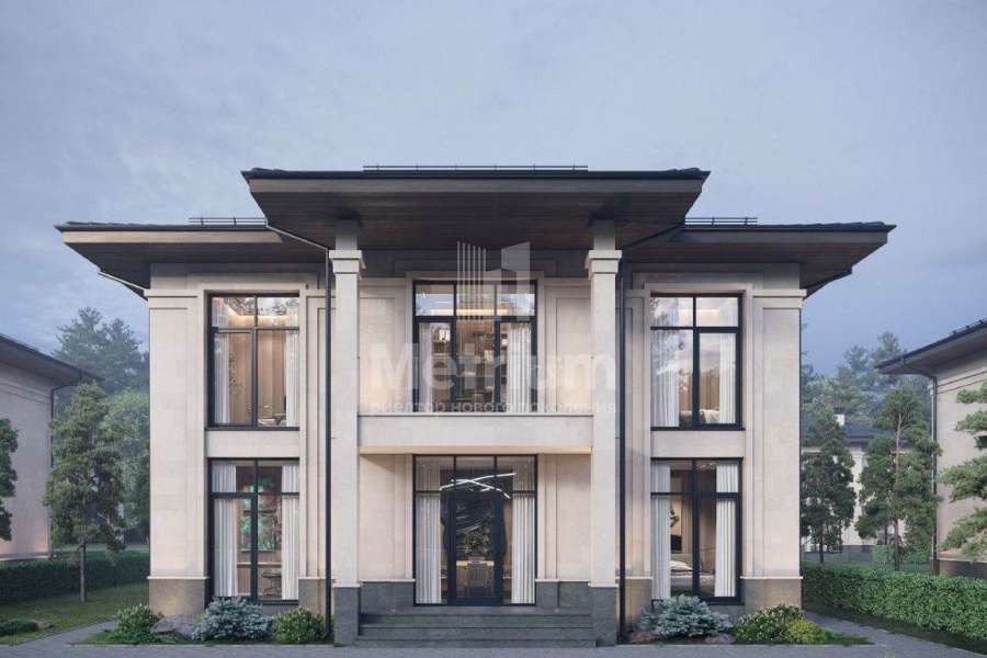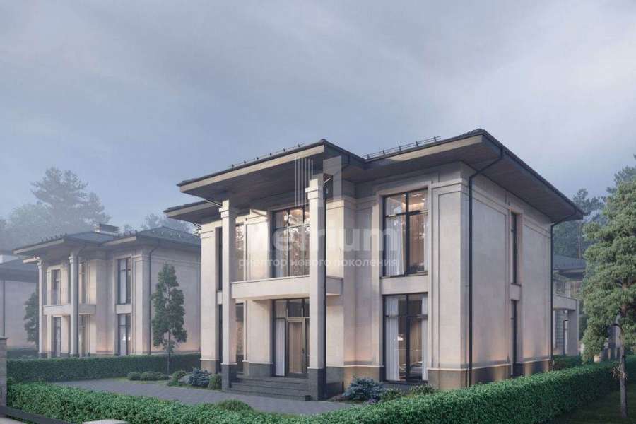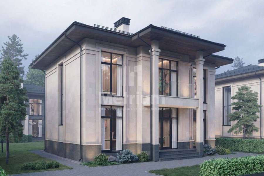 соток. По периметру будут высажены кустарники и деревья, а основная часть территории уложена газоном и готова к идеям по благоустройству. Внешняя отделка дома будет выполнена премиальными материалами в серо-молочной