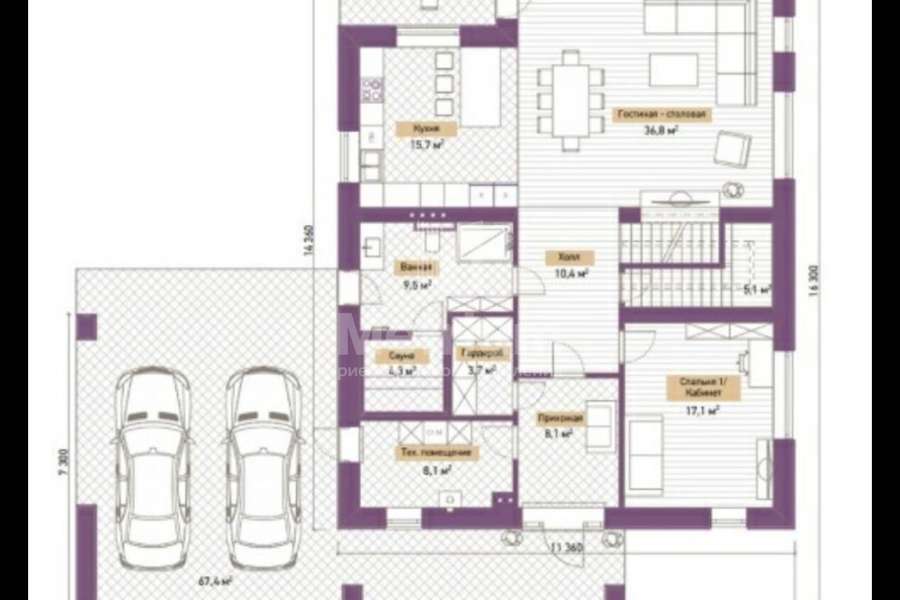 Внутреннее пространство представляет собой свободную планировку с панорамными окнами, высокими потолками до 4 метров, наполняющими пространство дома светом и воздухом, гаражом в контуре дома на 2 авто и просторной террасой для дружеских встреч. Возможности дома позволяют полностью реализовать любые идеи и потребности будущего владельца. Пространство вокруг дома представляет огороженный участок с аккуратным газоном подготовленный для реализации ландшафтного дизайна.